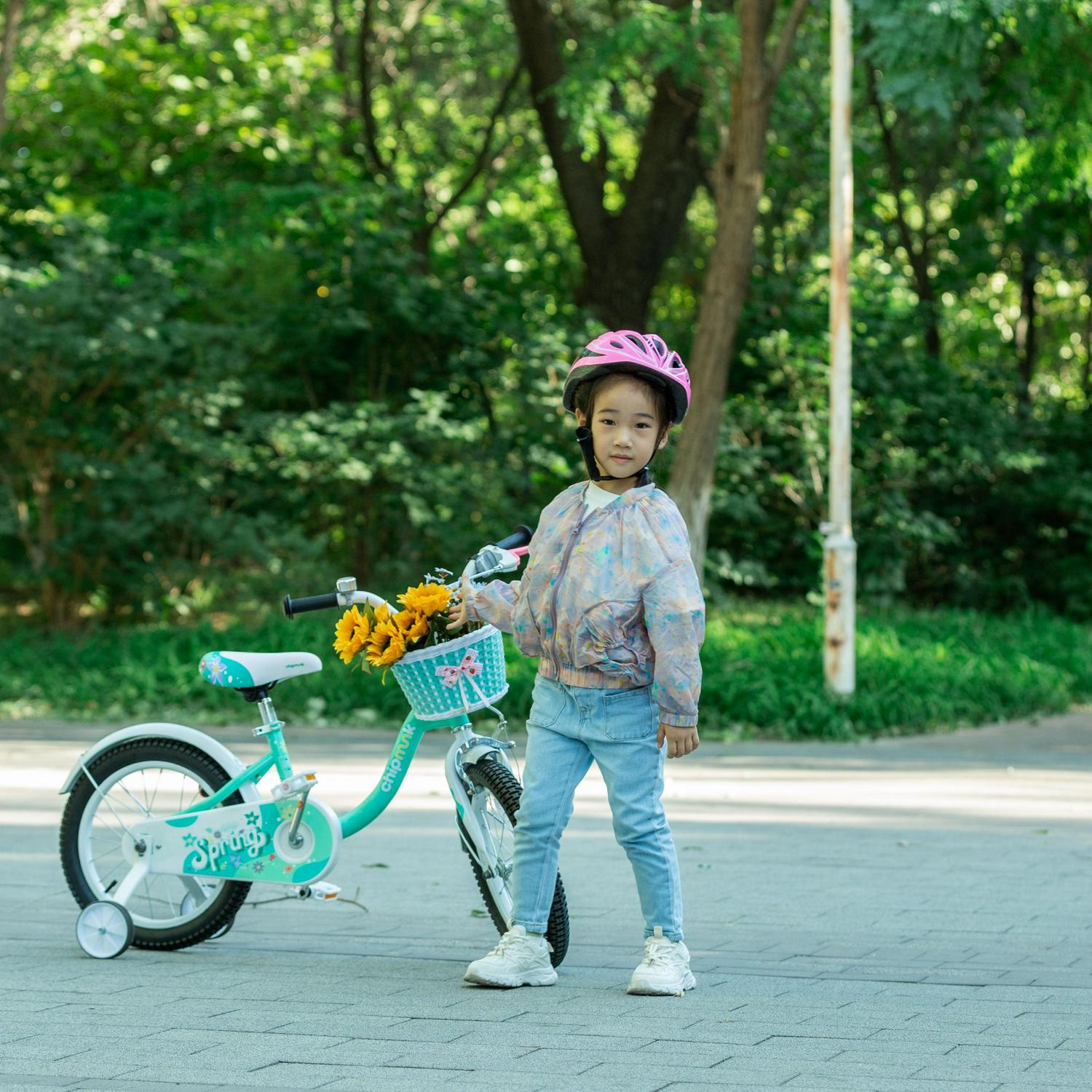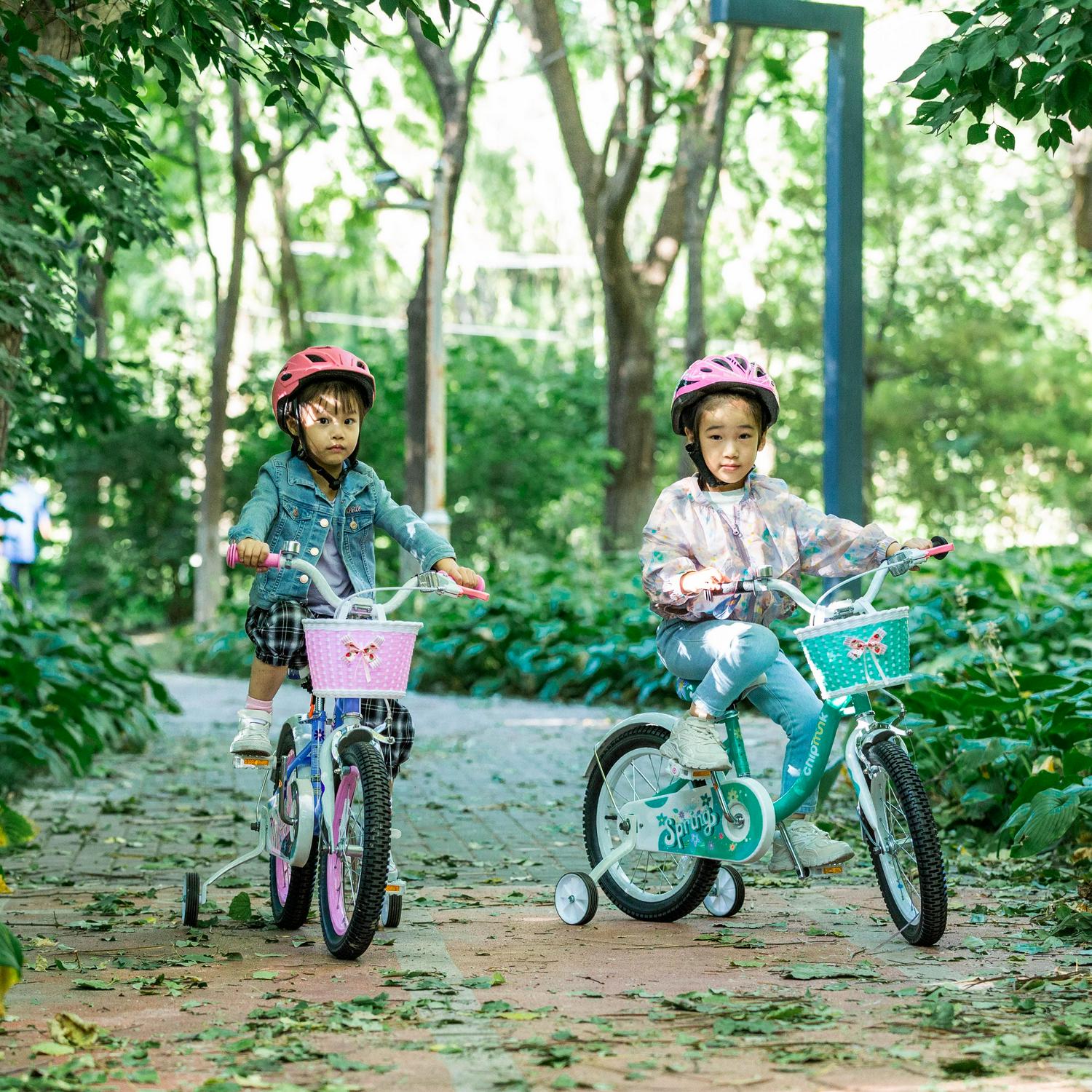 RoyalBaby Spring Kids Bike Girls 16 Inch Bicycle with Basket for Ages 3-9 Years Training Wheel Options Green