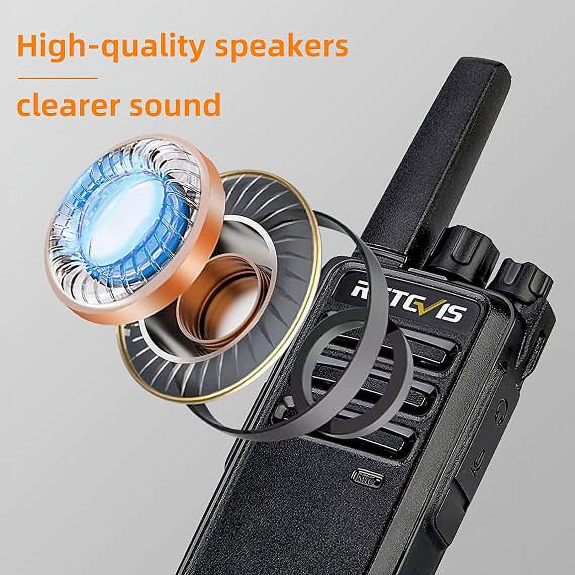 RT68 walkie-talkie has excellent performance in steel or concrete construction, which is designed to provide you with fast and efficient communication. Built-in high-quality speakers, 0-9 level noise reduction, ensure clear and loud audio.RT68 2-way radio with earpiece: In a manufacturing environment, it can be noisy. Some earpieces help. RT68 two-way radio features a 1200 mAh battery, it can deliver up to 12 hours of battery life; With excellent range and impressive battery life, these radios deliver Palm size two-way radios, are easy to carry while you are working, and also can be put in the pocket easily hard material which can withstand harsh shocks, vibrations. There are no complicated and unrealistic buttons, each radio has two knobs to adjust the volume and channel; is friendly to beginners, and is easy for employees or teams to get started quickly.