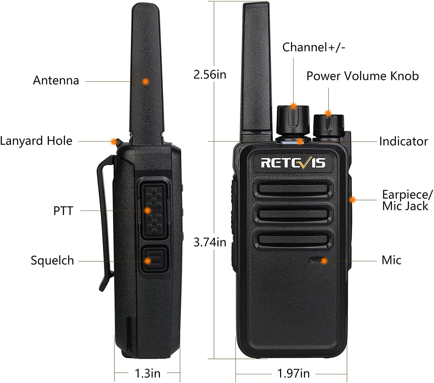 With clear communication and excellent range, RT68 radio offers 16 channel combinations that can penetrate concrete or steel, cost-effective radio can be used for construction, manufacturing, warehousing, retail, hospitality, school Palm-sized radio, easy to operate, each radio has a knob and buttons for easy adjustments of volume, and channel selection, with hardened durable shell, you don’t have to worry about normal drops at all Ensure the team calls, VOX function, achieves transmission activated by your voice, no need to press PTT to talk, greatly improve the efficiency of your call 0-9 level squelch, clear transmission, and reception of audio even in noisy places provide clear and loud audio output, effectively reducing power consumption and extending the battery life Sturdy, durable, reliable, and easy to use, RT68 two-way radios are an affordable way to improve employee and staff communications without having to use bulkier traditional radios Please note that our RT68 walkie-talkies are only FRS walkie-talkies, the FCC ID is: 2ASNSRT68, and our walkie-talkies meet FCC part 95 rule