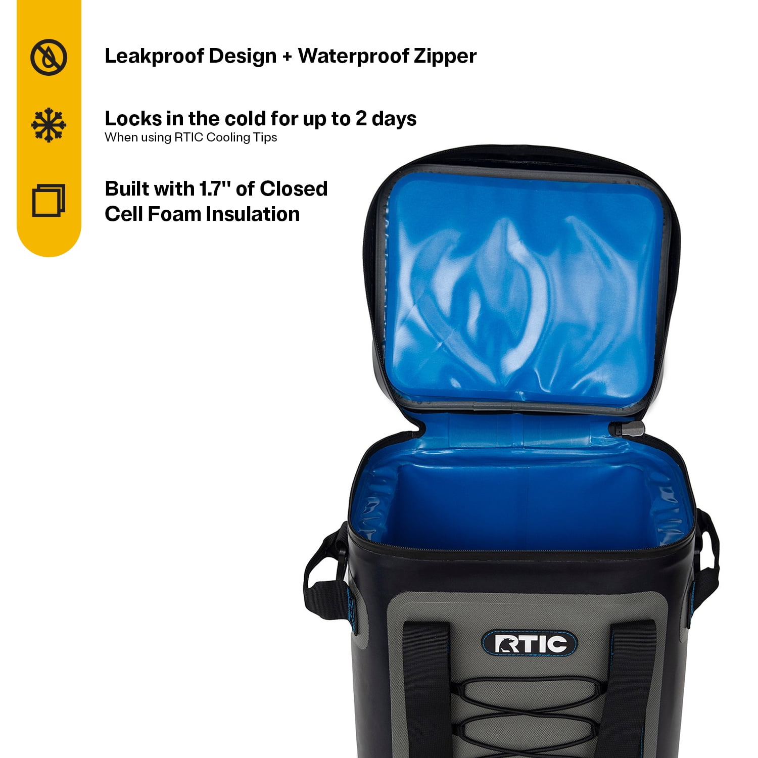 Leakproof Design with welded seams and a waterproof zipper allow this cooler to float. Up to 1.7 inches of Closed Cell Foam Insulation locks in the cold for up to 2 days. Heavy-Duty, Coated Fabric is tear and puncture resistant, for extreme durability. Welded, Waterproof Zipper makes this cooler waterproof and helps prevent water from getting in and out. Tear-Resistant, Waterproof Interior is compatible with ice cubes or ice packs. Padded, Adjustable Straps make it comfortable to carry even when it’s full.