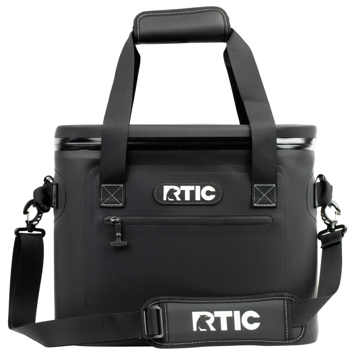RTIC Soft Cooler The RTIC soft insulated cooler is just what you need for a day trip at the lake, camping, picnic, fishing, a day on the beach, or at the pool. The perfect carry cooler bag to keep your food and drinks cool wherever needed for up to 24 hours. Not to mention it s a floating cooler bag, it floats, so your drinks and snacks can go wherever you go. The cooler box has a zippered pocket and an adjustable shoulder strap for easy carrying. The drink and food cooler measures 12 x 8 x 12 inches. It Floats With You The cooling bag cooler is lightweight yet tough to take on any terrain with its heavy-duty nylon shell. It makes an ideal beverage cooler, travel cooler, beer can cooler, lunch box cooler, camp cooler, fishing cooler, boat cooler, beach cooler, and more. It s a 100% leak-proof cooler bag thanks to a durable zipper that prevents spills and leaks. Features a puncture and tear-resistant liner. Comes in a 12 can cooler bag, 20 can cooler bag, 30 can cooler bag, and 40 can cooler bag size.