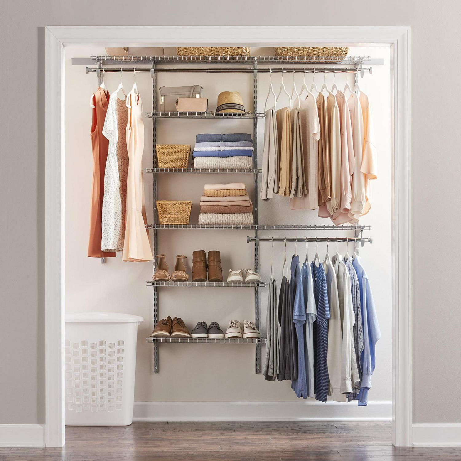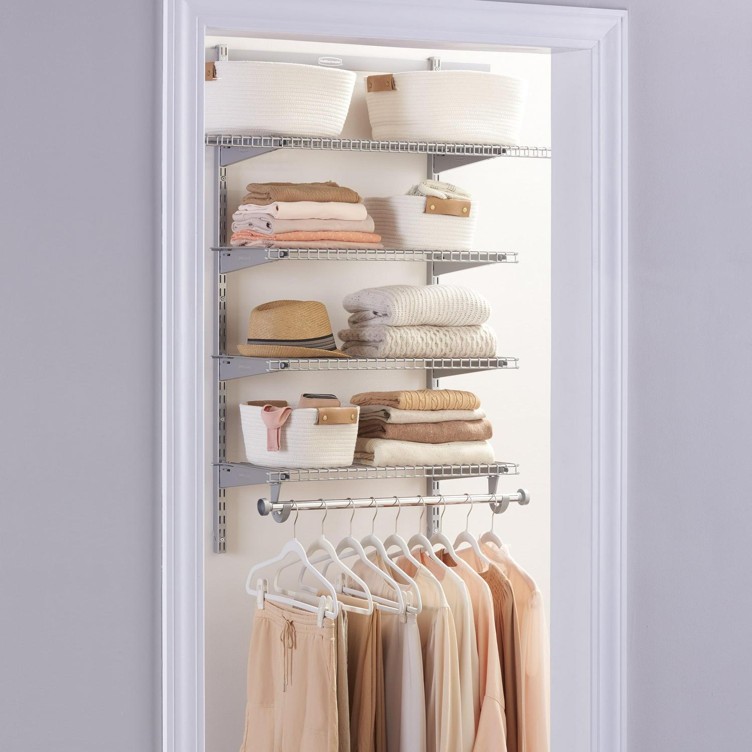 Rubbermaid 3-6ft Expandable Deluxe Closet Kit Storage Solution, Satin Nickel