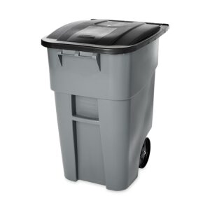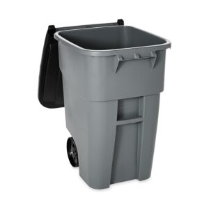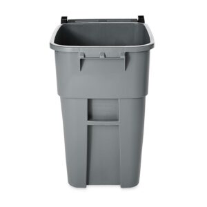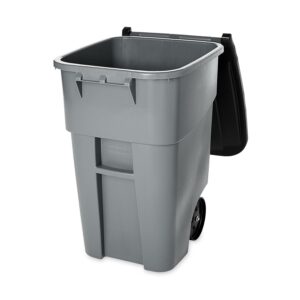 The Rubbermaid Commercial BRUTE Recycling Roll-Out Trash Can with Lid offers easy mobility for general refuse collection and material handling. These trash cans include heavy-duty, 8-inch wheels that afford easy mobility, even over steps or curbing. The attached hinged lid fits tightly, swings back, and locks in place. Tough BRUTE trash can construction for a long life. The garbage can features rounded corners and smooth contours for easy cleaning. The molded-in axle retainer adds strength. Global Product Type – Waste Receptacles-Recycling Square, Hinge Lid Waste Receptacle Type – Trash Container Material(s) – Molded Plastic Application – General Waste Capacity (Volume) – 50 gal Color(s) – Gray Shape – Square Opening Type – Open Top Handle – Full-Width Molded Lid Type – Hinged Width – 28 1/2 Depth – 23 2/5 Height – 36 1/2