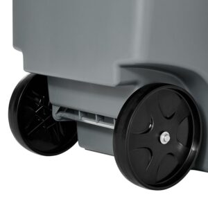 – Plastic construction offers heavy-duty storage and wear resistance. Durable 8″ rubber wheels are non-marring to roll smoothly and protect floors.