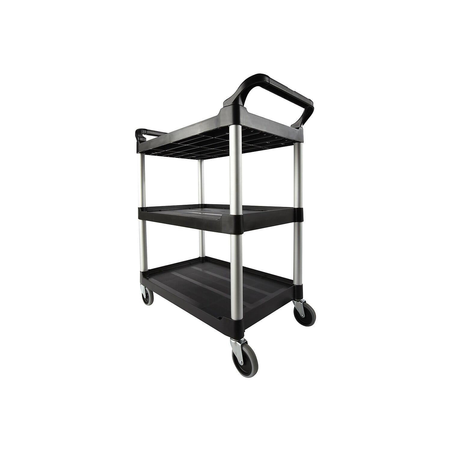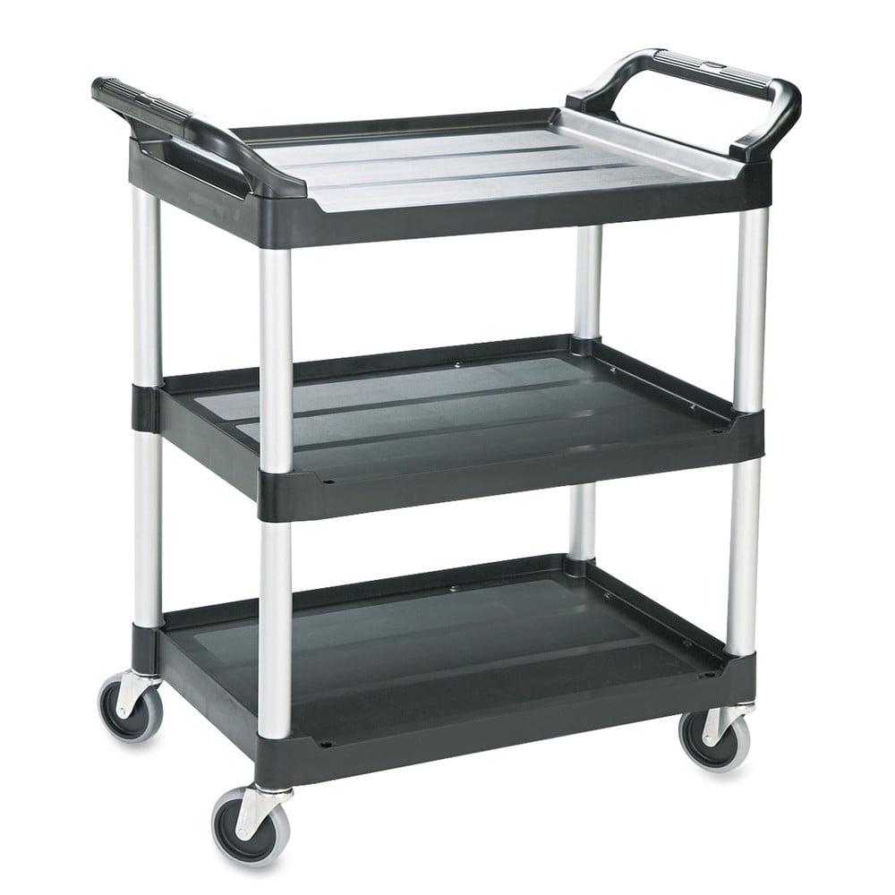 Rubbermaid Commercial Economy Plastic Cart, Three-Shelf, 18.63w x 33.63d x 37.75h, Black -RCP342488BLA