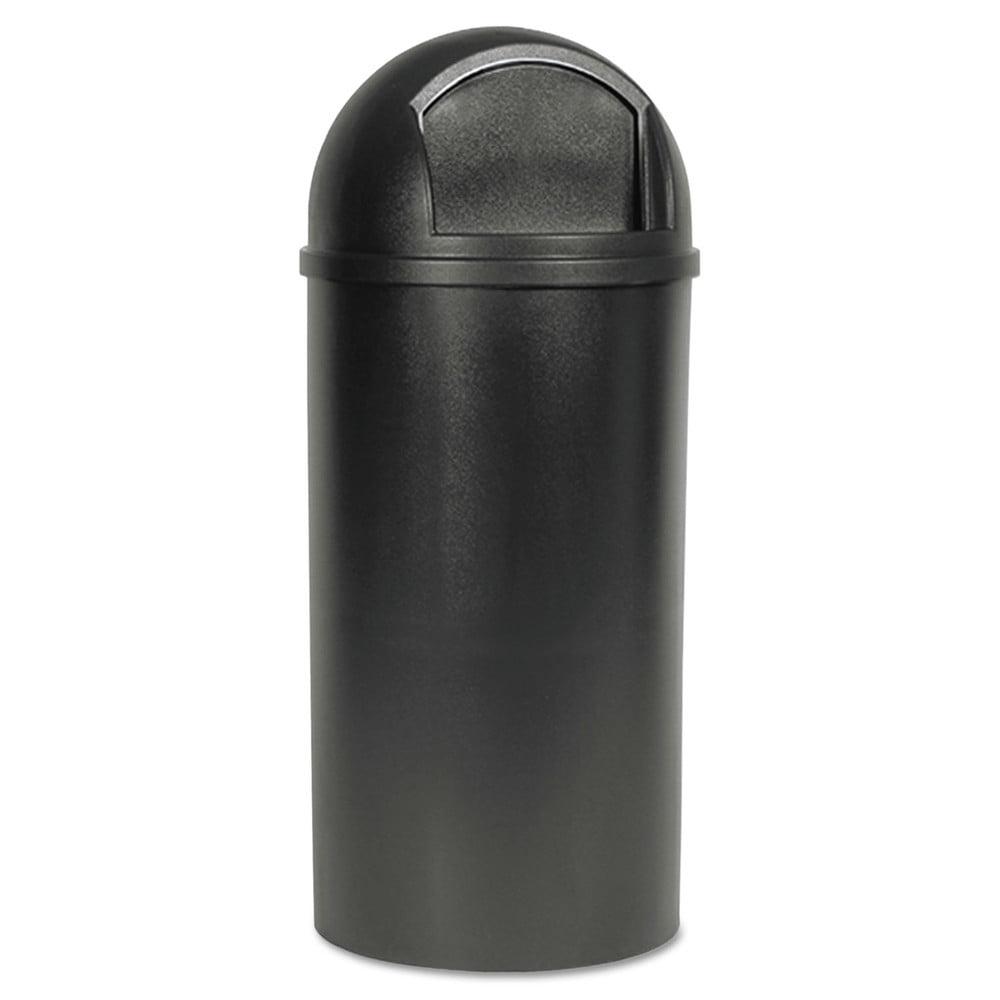 This Marshal has arrived to help clean up the town. Practical good looks combine with fire safety in this durable plastic container. Push door conceals waste. Textured finish helps minimize appearance of surface scratches. Includes retainer hardware for securing and concealing can liners. For indoor use. Waste Receptacle Type: Indoor All-Purpose Waste Bin; Material(s): Plastic; Application: Indoor All-Purpose Waste Disposal; Capacity (Volume): 15 gal.