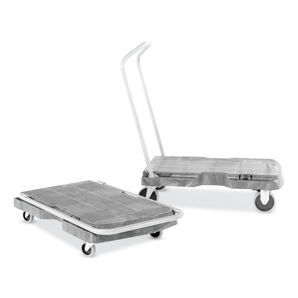 Standard-duty Triple Trolley efficiently transports large bulky loads and then folds flat for easy storage. Three-position, user-friendly handle lets you push, pull or fold flat for use as a dolly. Nonskid platform surface helps prevent load shifting. Sturdy structural foam deck won’t rust, dent, chip or peel. Tough plastic construction is easy on walls and doors. 5″ diameter casters are nonmarking. Capacity is 500 lb.