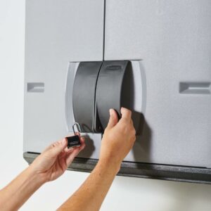 - Lockable doors keep valuables out of sight and hazardous materials away from children