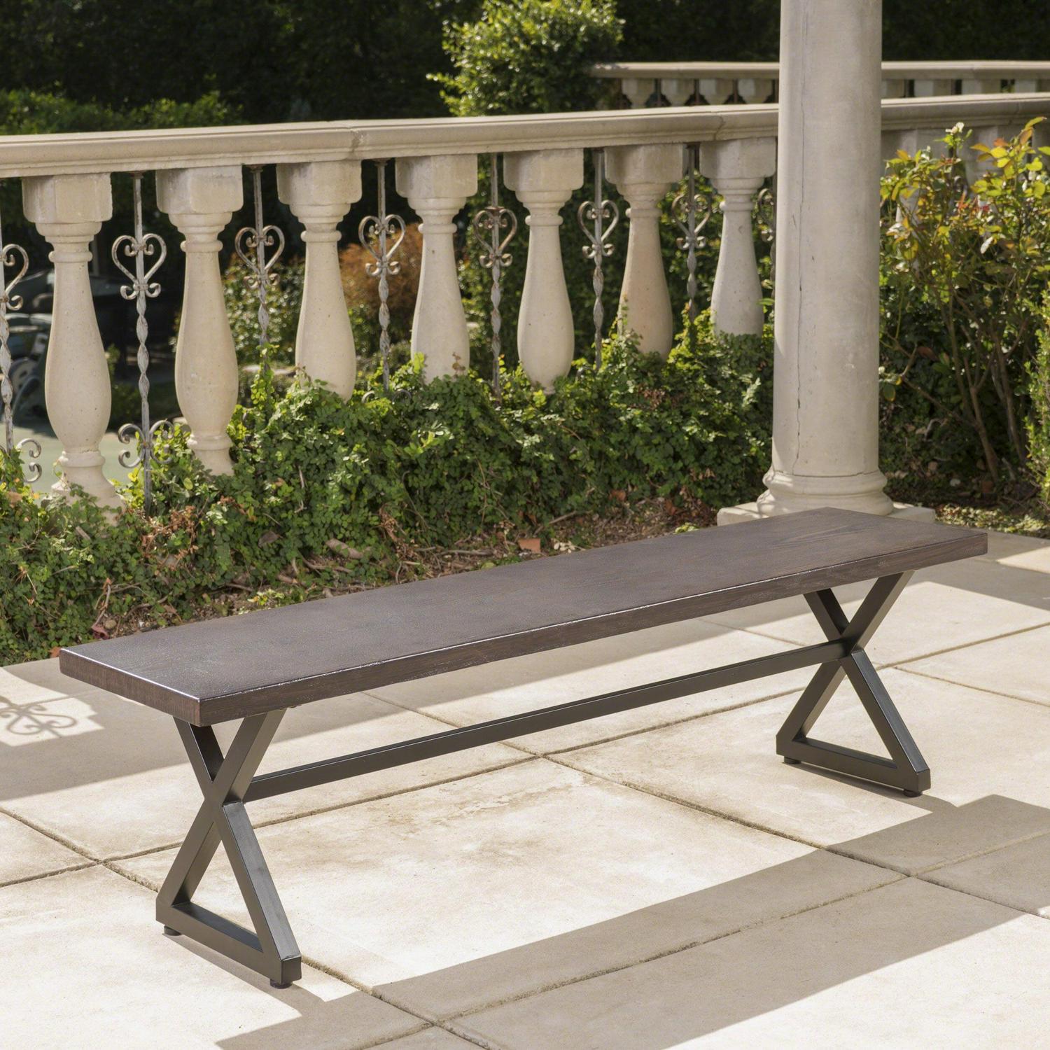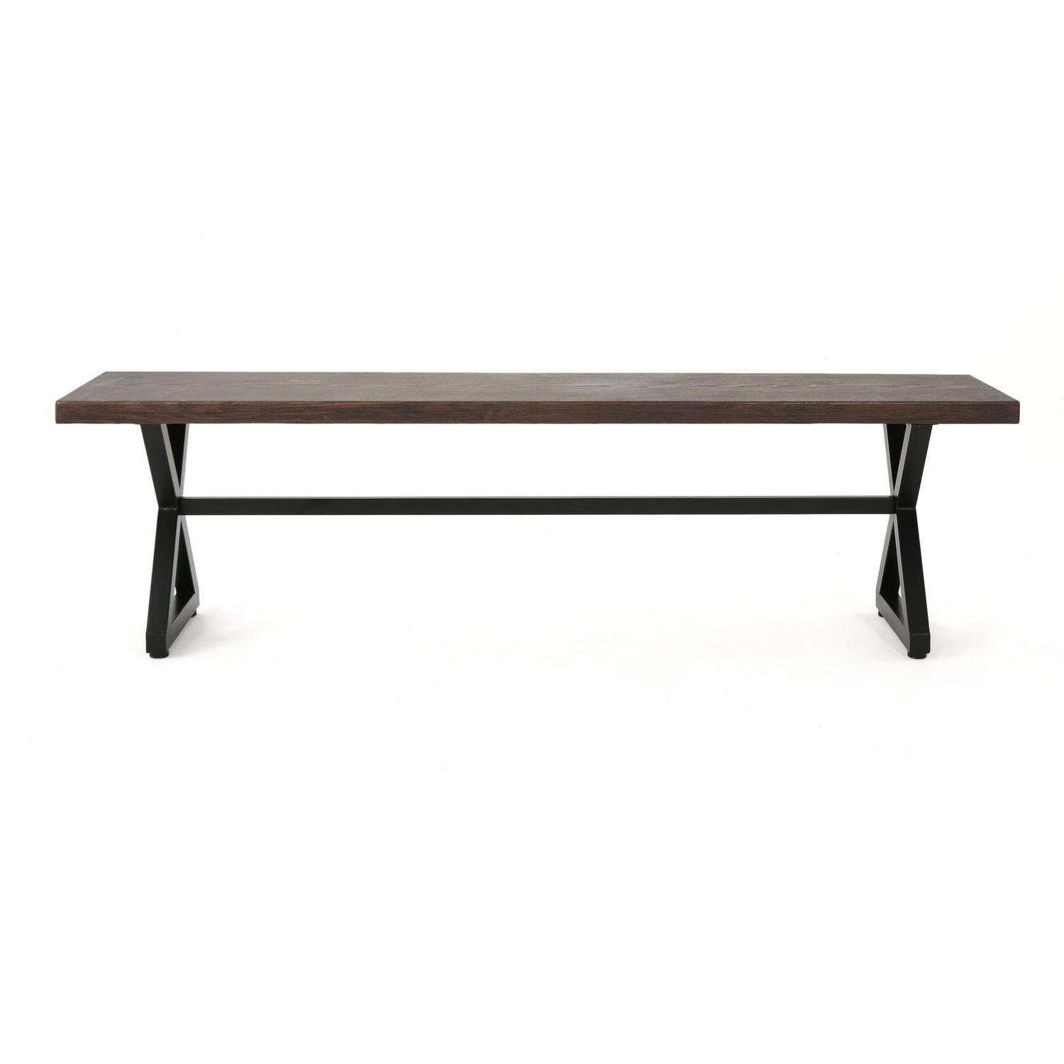 Ruby Outdoor Aluminum Dining Bench with Black Steel Frame, Brown: