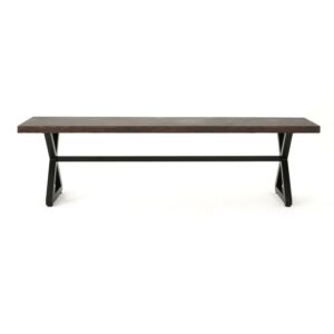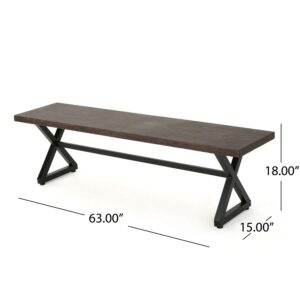 Ruby Outdoor Aluminum Dining Bench with Black Steel Frame, Brown