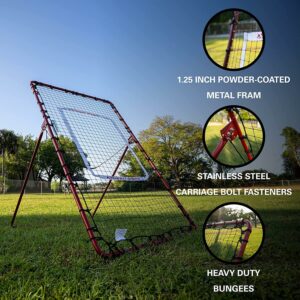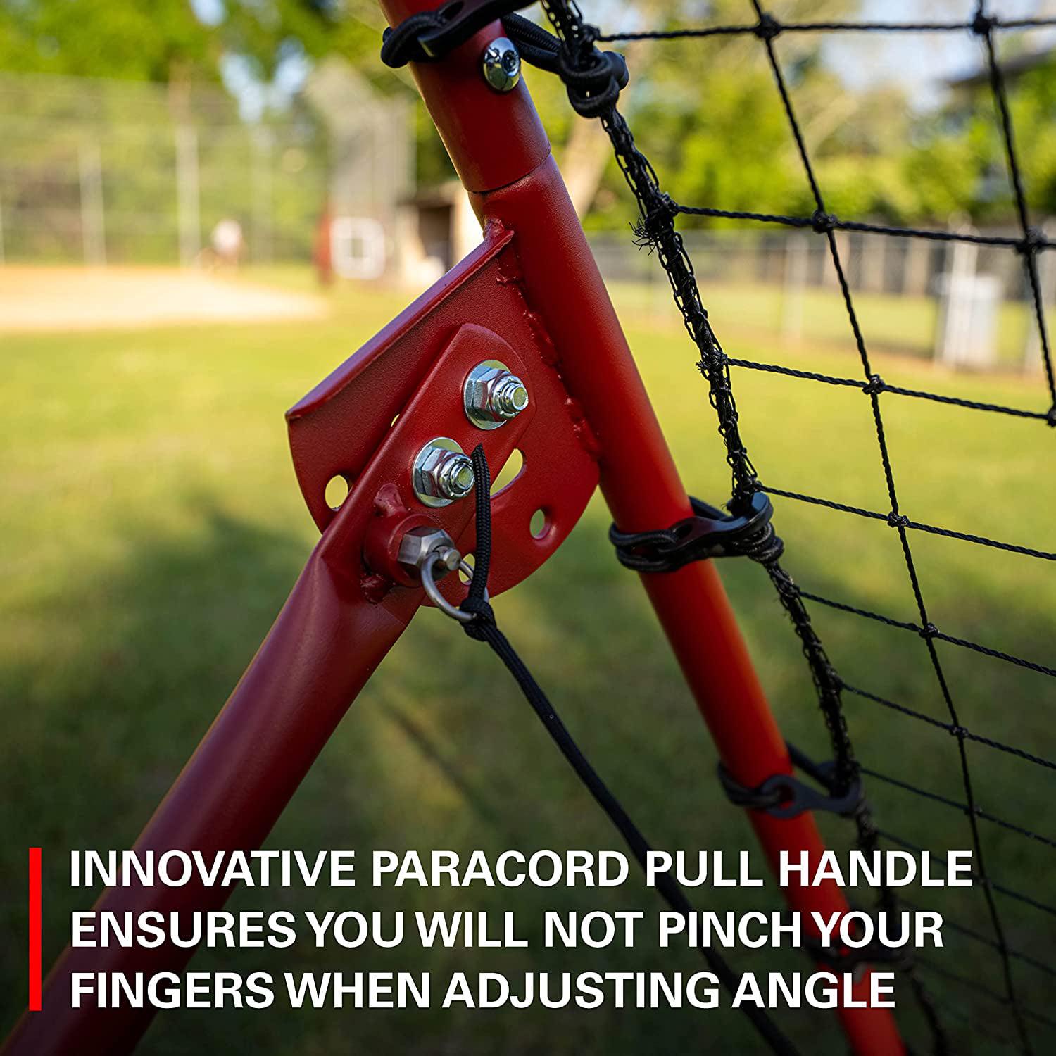 Robust stainless steel frame and 1 mesh durable netting. Built-in pitchback automatic ball return feature, making it easy to retrieve your balls after throwing. SWITCH PITCHING ANGLES Comes with built-in paracord handle adjustment, making it easy to adjust the angle of the frame. Switch between preset angle adjustments optimally designed to simulate game-like situations such as pop-flies and grounders. PERFECT YOUR PITCH The rebounder will help you improve your hand-eye coordination through continuous pitching from multiple angles. Quicken your reflexes and reaction speed with the bounceback ball return feature. This product is backed by RUKKET S 100% LIFETIME WARRANTY AND SATISFACTION GUARANTEE for no risk-purchasing.**
