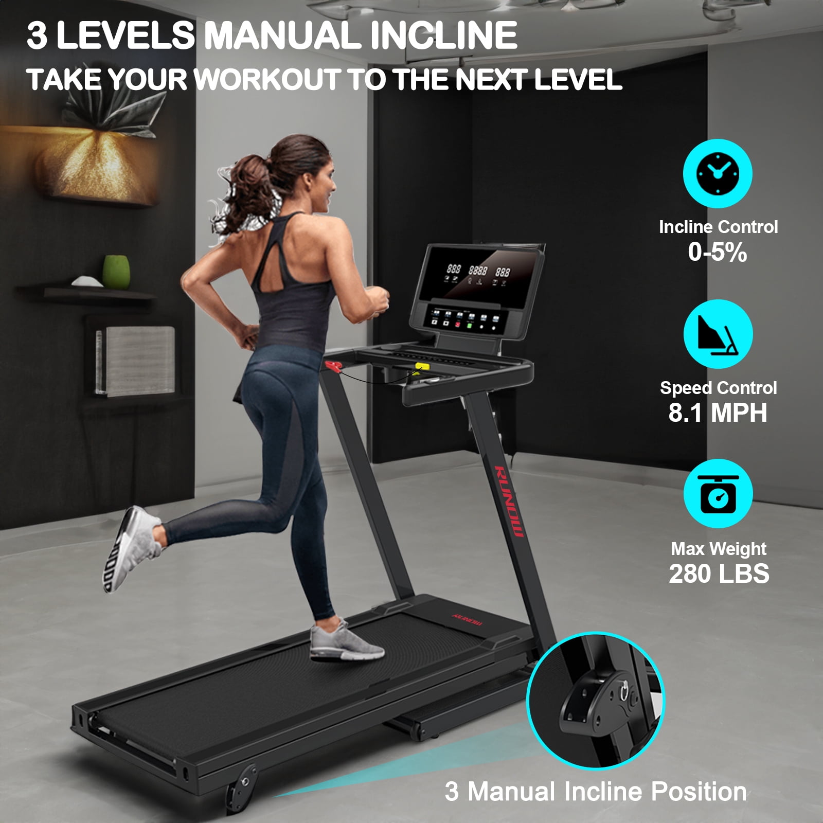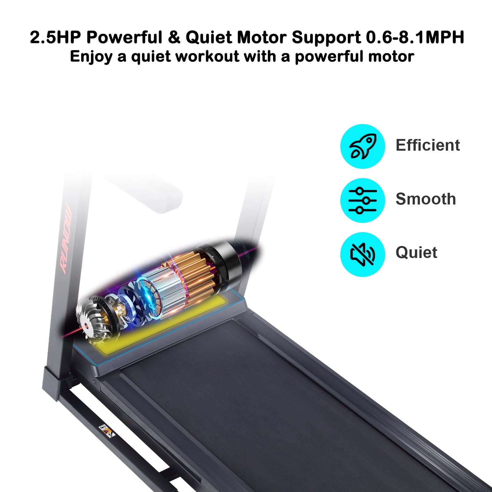 RUNOW 2.5 HP Treadmill with Manual Incline, 8.1MPH Folding Treadmill with Heart Rate Monitor and 40 Programs , Easy Assembly Electric Running Machine for Home & Office