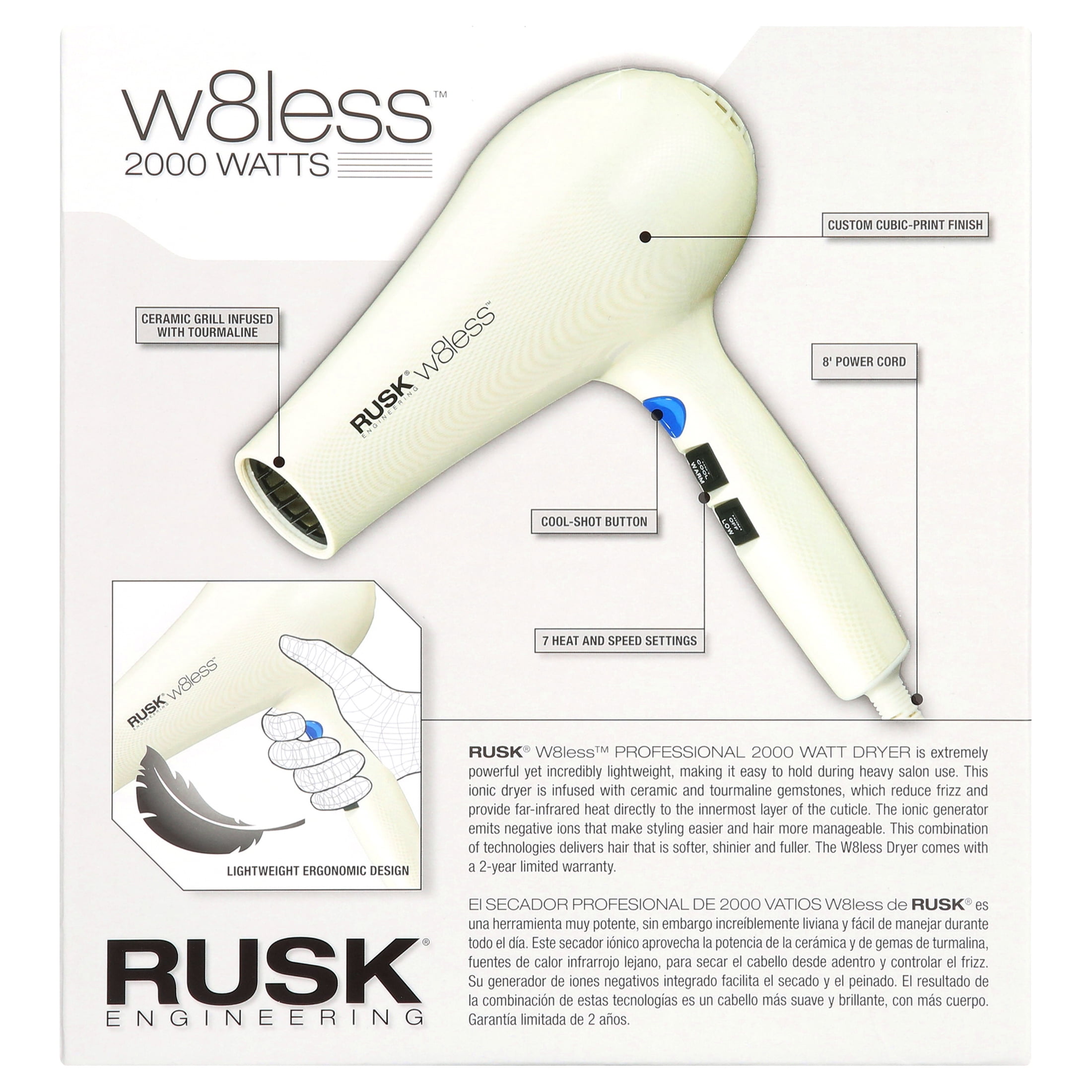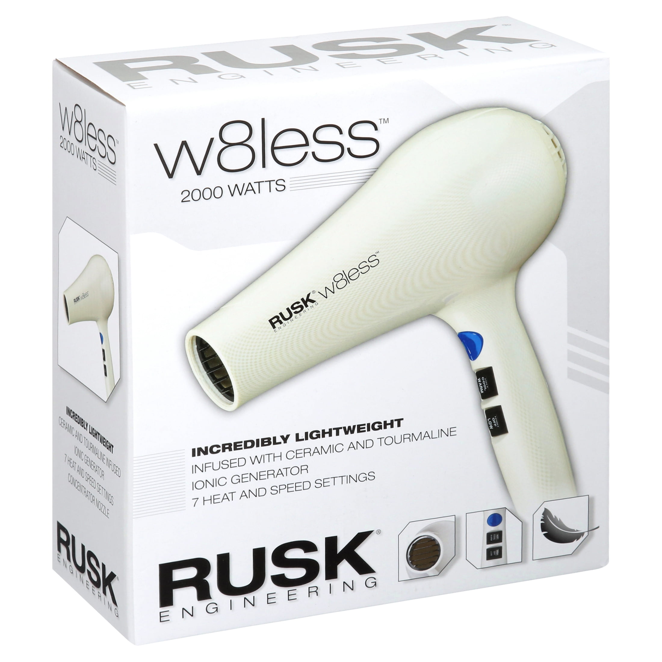The Rusk W8less 2000 Watt Ceramic and Tourmaline Hair Dryer is extremely powerful and yet lightweight.
