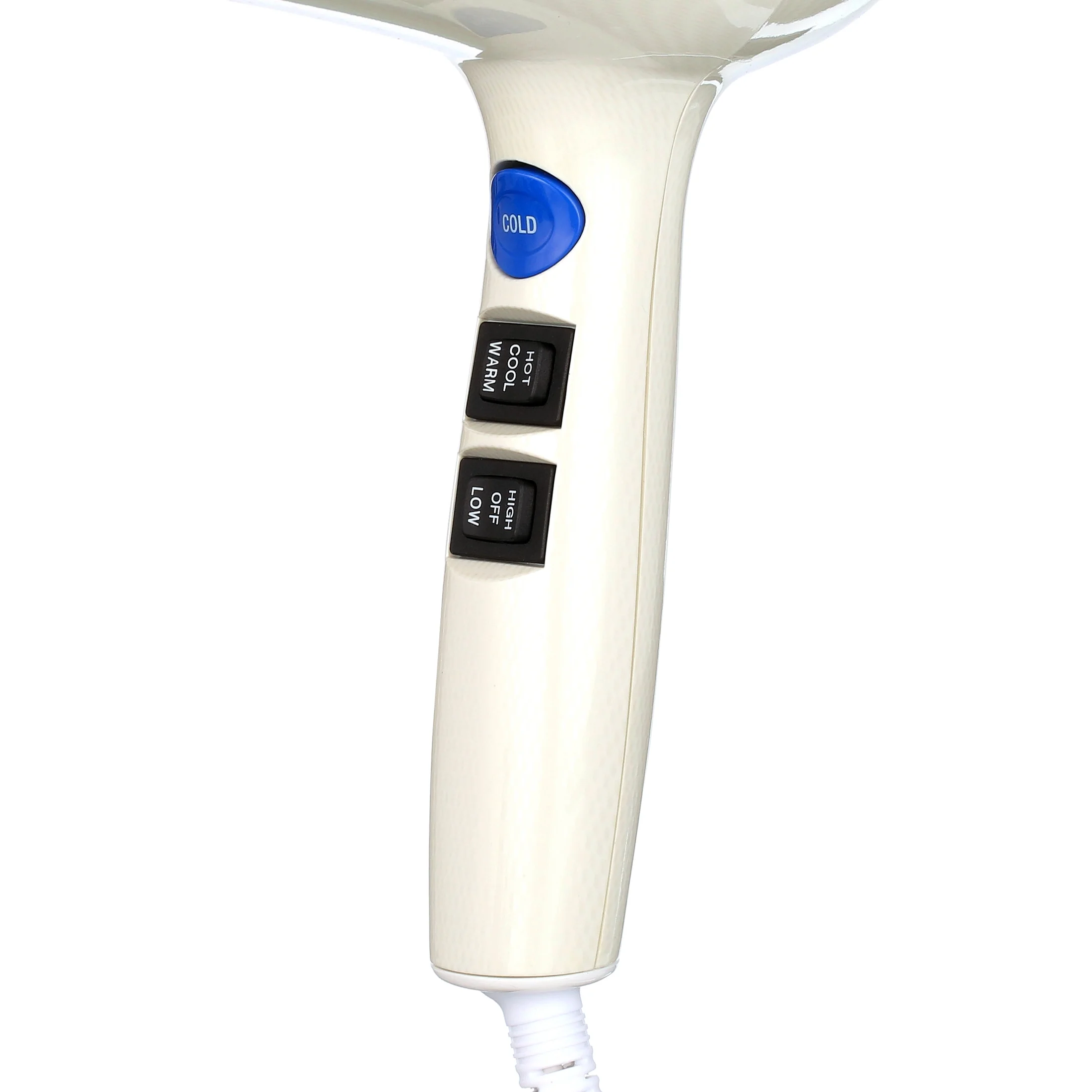 Color: White Quickly dries the hair while adding shine and reducing frizz Cool air button 1 concentrator nozzle 8 feet power cord 7 heat and speed settings Suitable for all hair types Far-infrared heat deeply penetrates the hair without damage