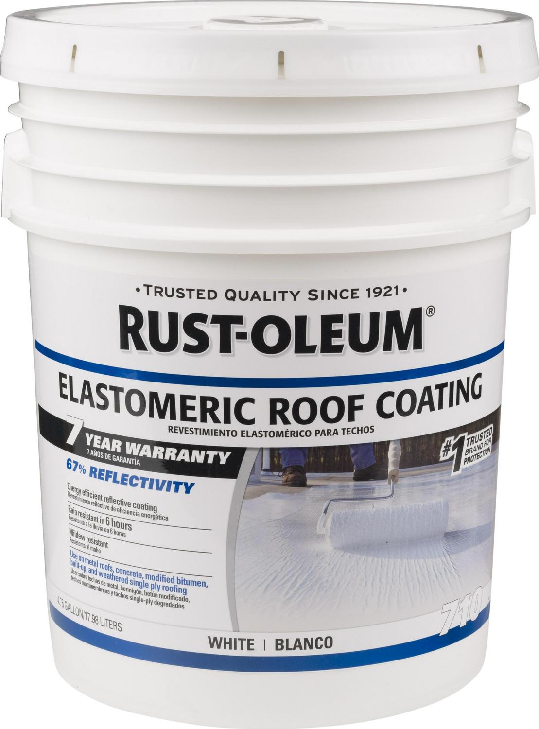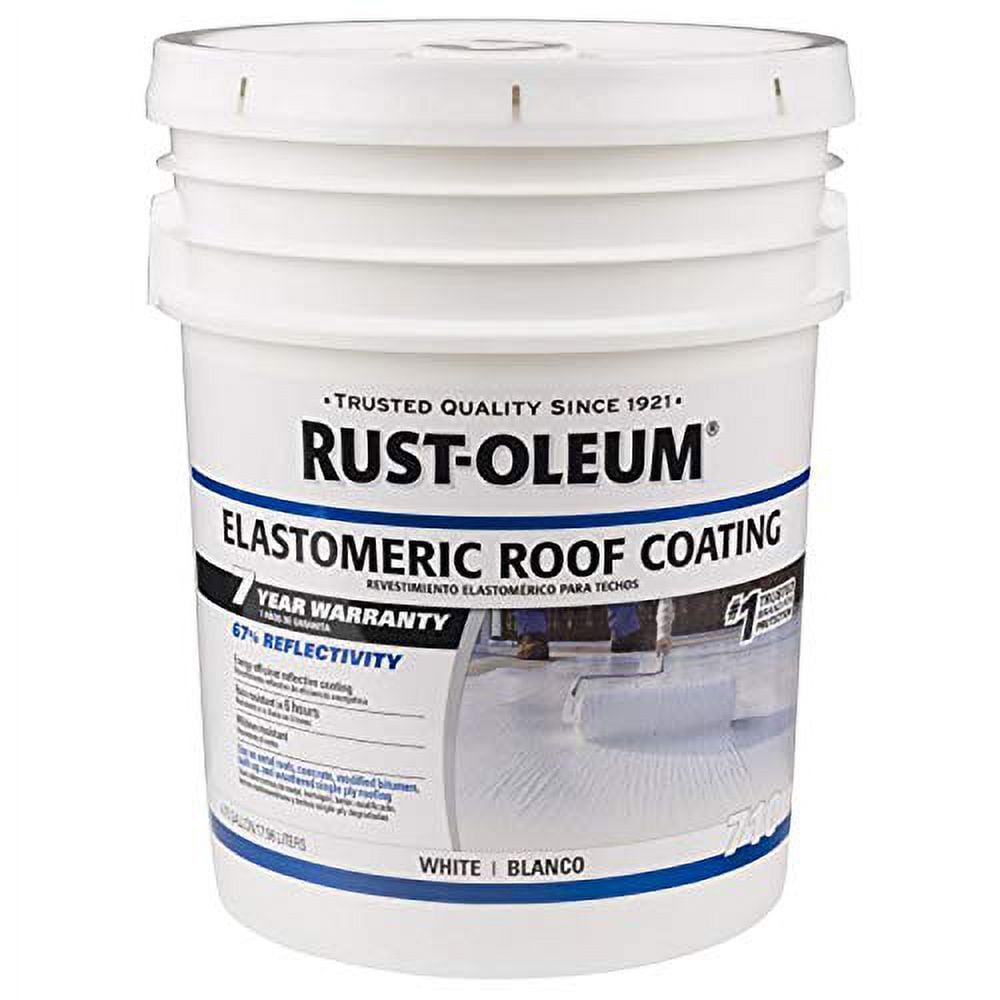 Rust-Oleum Roofing 7 Year Elastomeric Roof Coating combines exceptional durability and an 84% high initial reflectivity for an energy efficient, long-term roofing solution. Use it to waterproof and weatherproof metal, weathered single ply membranes, smooth surface asphalt built-up and modified bitumen roof surfaces. Coating protects against mildew build up and is rain resistant in just 6 hours.