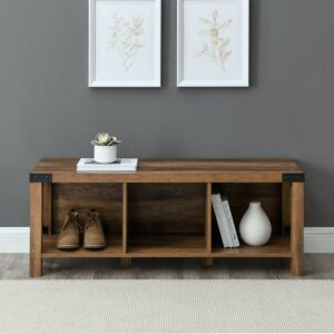 Rustic Farmhouse Entryway Storage Bench, Brown