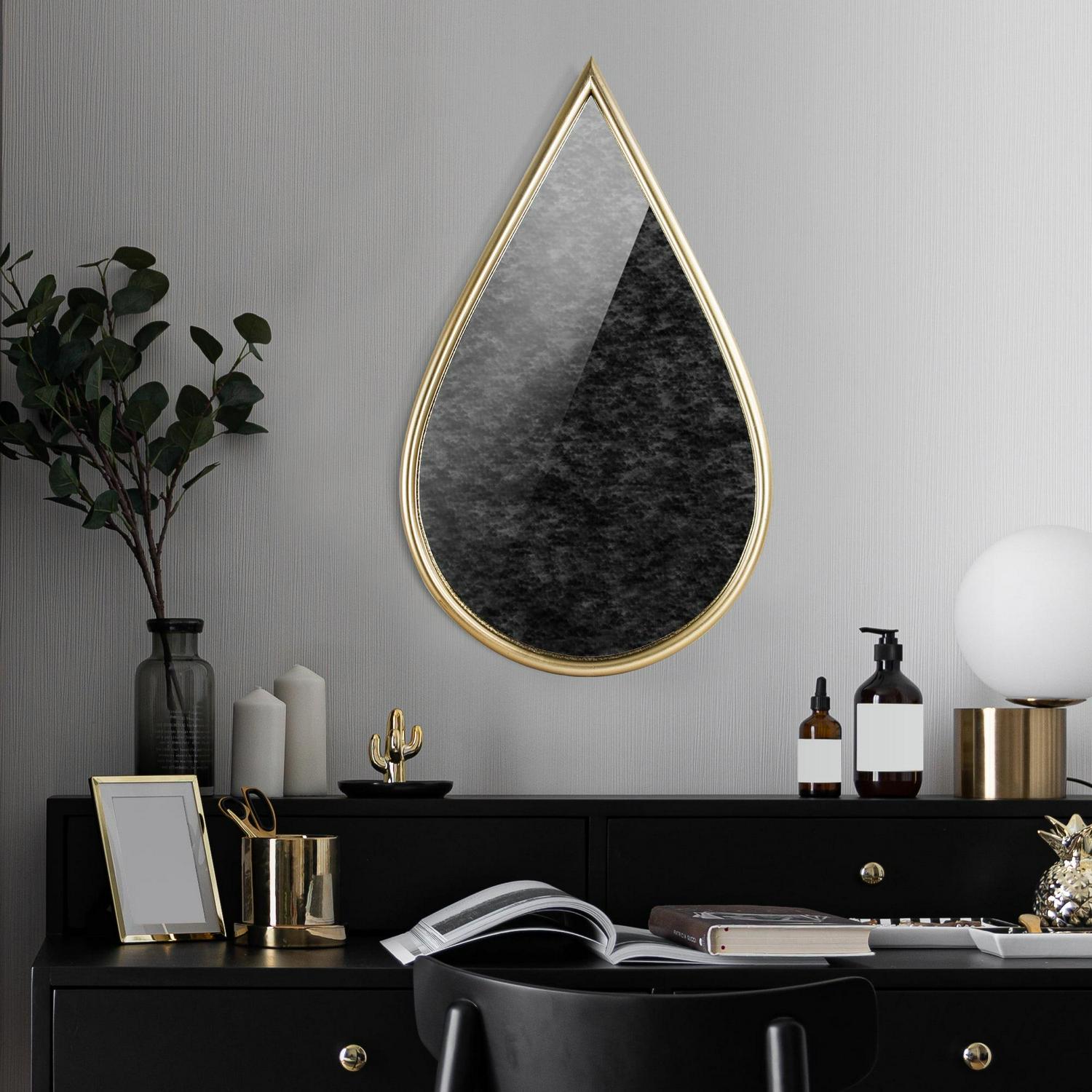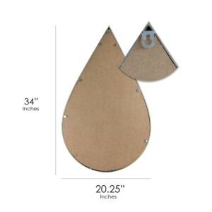 You love the distinct look of antique mirrors, and would love to see one on your wall. But we don’t all have the time or the budget to scour endless estate sales and vintage shops, only to come up empty-handed or with a piece that has been warped or damaged with age. DIY projects to make a clear new mirror look antique can be messy and challenging. With this unique mirror, you can get the best of old and new. This striking mirror takes the ease of purchasing affordable, ready-to-hang wall decor with a click of your mouse, and blends it with the eye-catching aesthetic of antiques. This droplet wall mirror features an unusual teardrop or water drop shape framed in a beautiful gold shade, and the mirror surface has been mottled to echo the appearance of an antique heirloom. Mirrors expand your space and maximize natural light, so use this eye-catching wall mirror to open up a small or dimly lit living room, dining room, or entryway. Place it opposite a window or behind a pendant lamp to cast diffused light with a unique and enchanting look. Hang this gorgeous mirror above a bedroom dresser, along a hallway, or as the focal point of a salon style gallery wall. This wall decor is especially suited to rooms with vintage style or gold accents. The mirror is 31″ tall, and 18.25″ across at its widest point. With its frame, the mirror is 34″ tall and 20.25″ across at its widest point. PRODUCT SPECS: Dimensions: 34″ H x 20.25″ W x 1.75″ D Weight: 10.85 lbs
