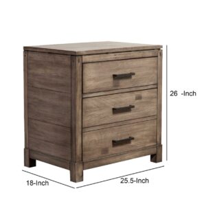 Rustically Designed Nightstand with 3 Drawers Brown- Saltoro Sherpi
