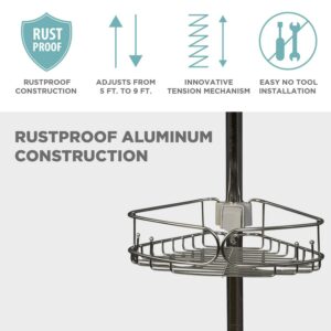 Rustproof Tension Pole Shower Caddy with 4 Basket Shelves, 60 to 108 , Zenna Home Stainless Steel