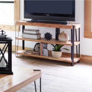 Ryegate Natural Solid Wood with Metal Media Console Table, Natural