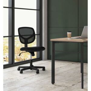 The task chair features a breathable mesh back and durable sandwich mesh on the seat. It also offers simple and intuitive controls such as pneumatic seat height adjustment and 360 degree swivel for added customizability and comfort. The comfort, stylish look, and price point of this chair make it a perfect addition to the office, whether at work or at home. Recommended Application Area(s): General Office & Task; Seat Color: Black; Back Color: Black; Color Family: Black.