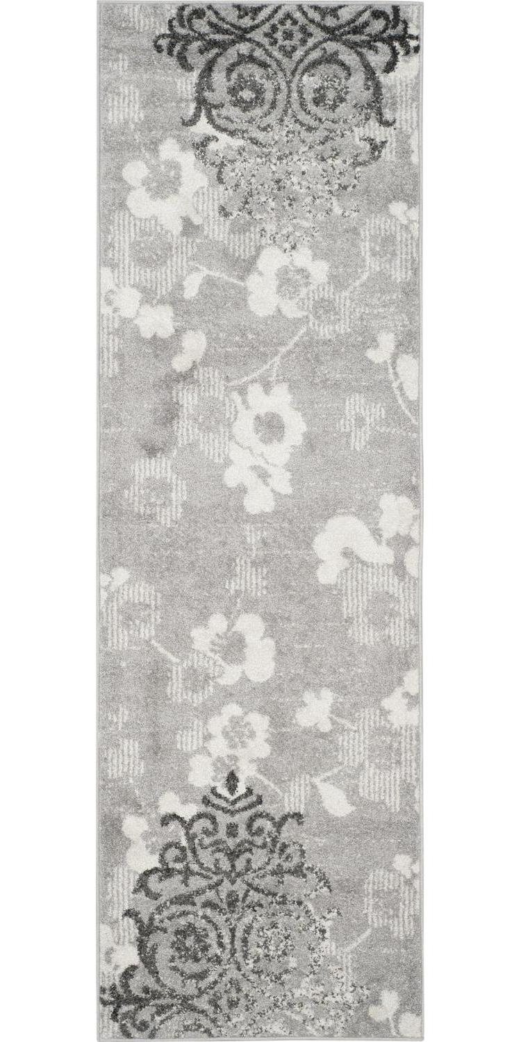 SAFAVIEH Adirondack Hortense Floral Runner Rug, Silver/Ivory, 2’6 x 22′