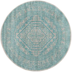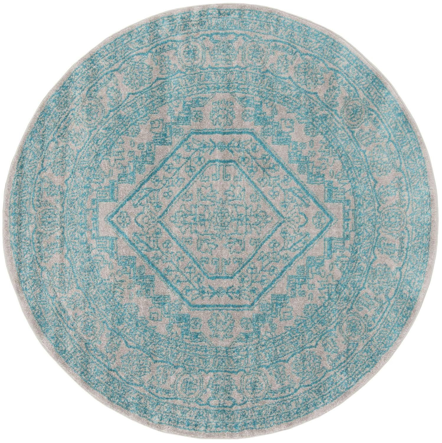 SAFAVIEH Adirondack Xavier Traditional Area Rug, Light Grey/Teal, 6′ x 6′ Round