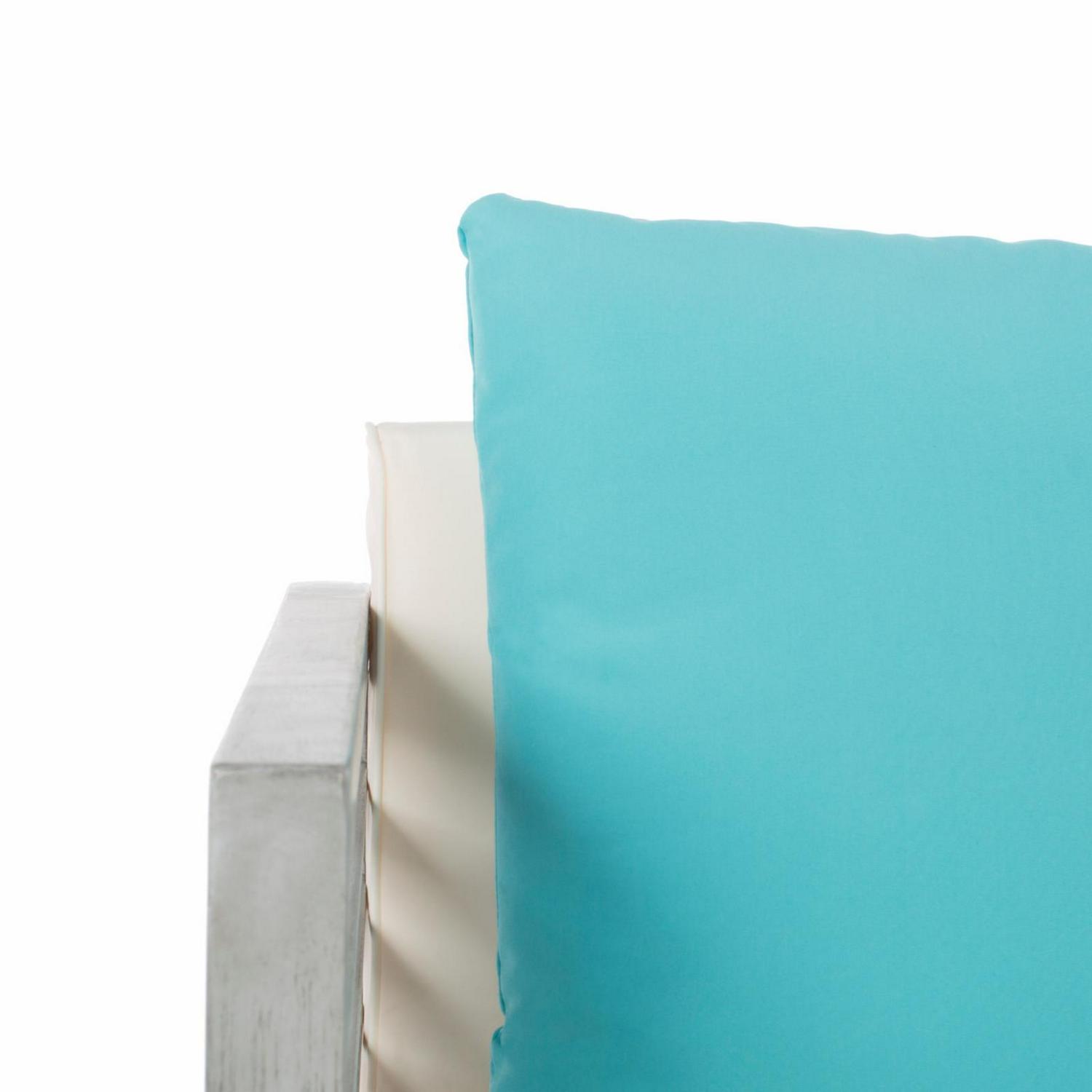 Inspired by Barcelona’s coastal style, this contemporary 4-piece outdoor set is a new classic. Designed with chic clean lines, each piece is crafted in a neutral natural hue and upholstered in white for timeless appeal. Its bold navy accent pillows are complementary.