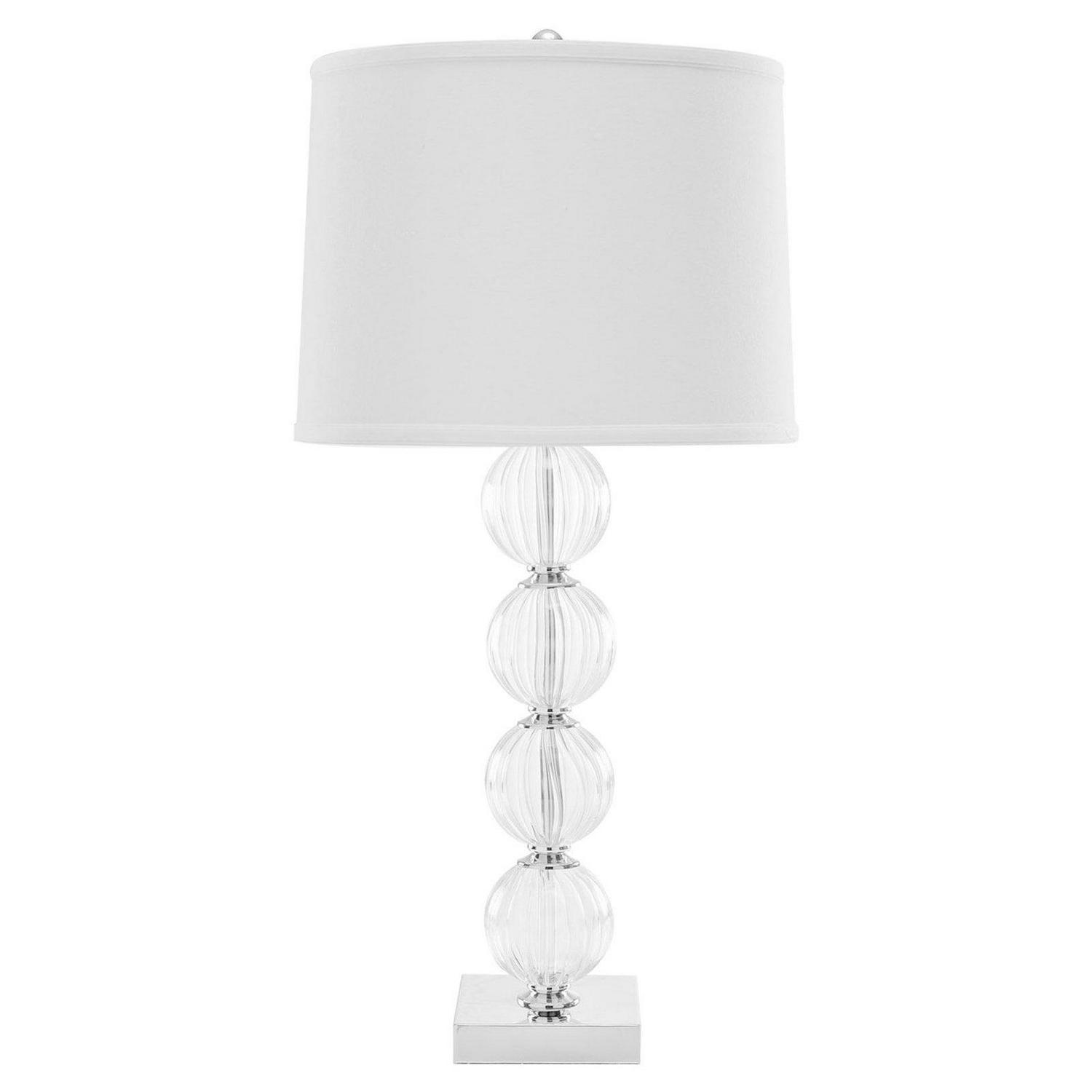 SAFAVIEH Amanda Black Glass Globe Lamp | White | Updating an Art Deco classic, the Amanda Lamp balances four fluted crystal balls atop a polished mirror finish metal base. Amanda is just as glamorous as its roaring 20’s inspiration, refreshed for today s homes with an off white linen style drum shade. Begin your rug, furniture, lighting, outdoor, and home decor search and discover over 100,000 SAFAVIEH products today.