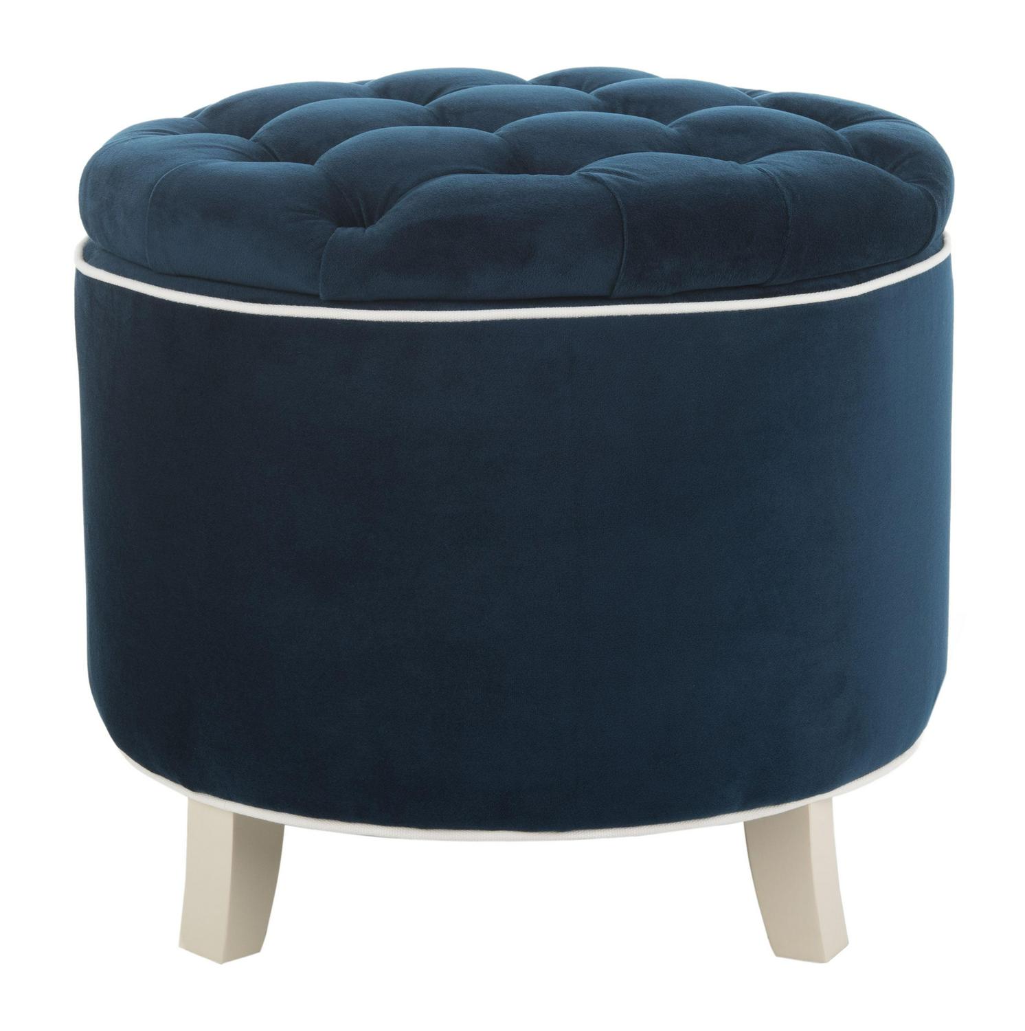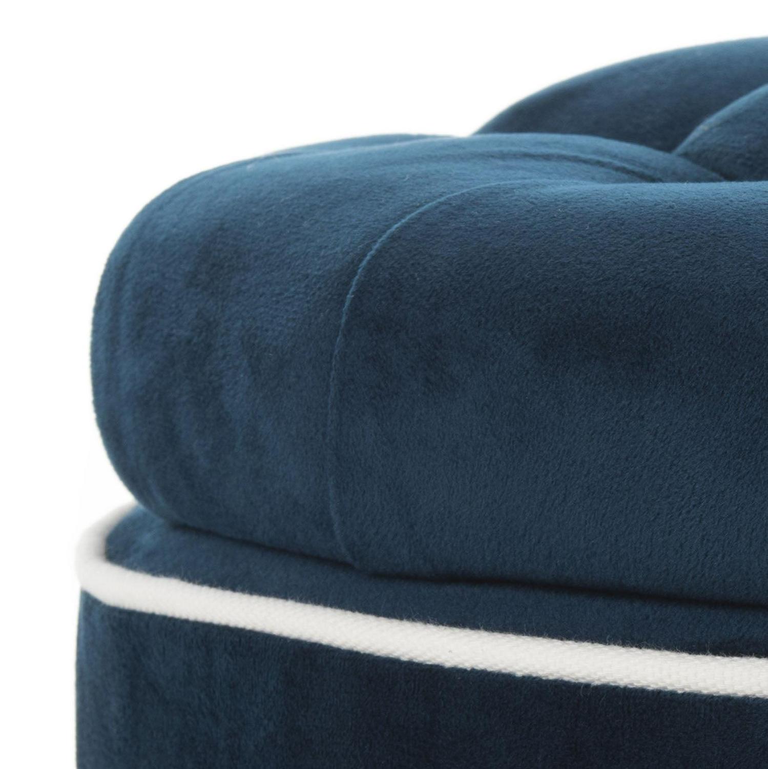 SAFAVIEH Amelia Contemporary Glam Tufted Storage Ottoman, Navy