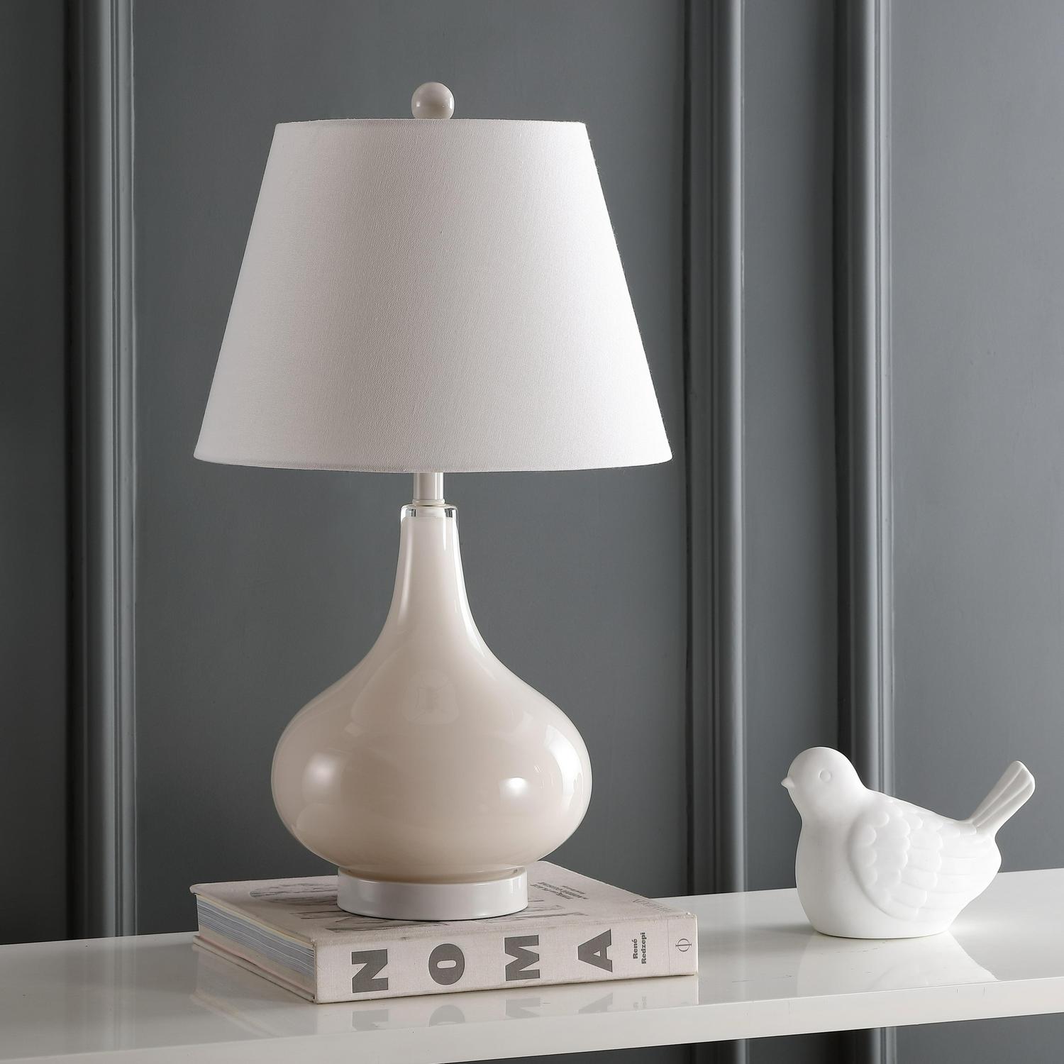 SAFAVIEH Amy 24 in. Pearl Glass Table Lamp with Off-White Cotton Shade, Set of 2