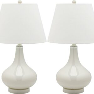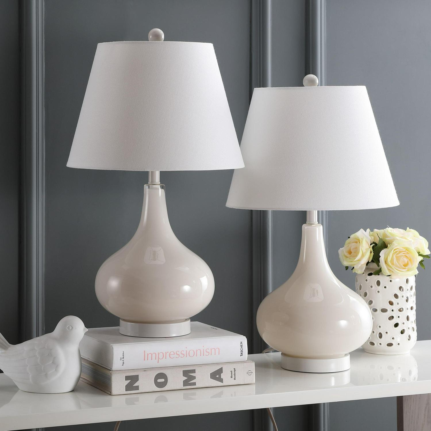 SAFAVIEH Amy 24 in. 2-Lt. Pearl Glass Table Lamp with Off-white Cotton Shade, Set of 2