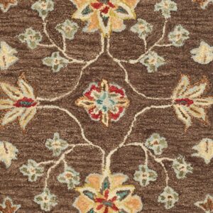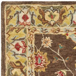 SAFAVIEH Anatolia AN562A Handmade Brown / Gold Rug The Anatolia Rug Collection brings old world sophistication to new, hand-tufted rugs. Every rug in this collection captures the genuine look and character of 19th century Anatolia rug artistry. They are made with a densely woven thick pile and a lustrous finish. Rug has an approximate thickness of 0.5 inches.