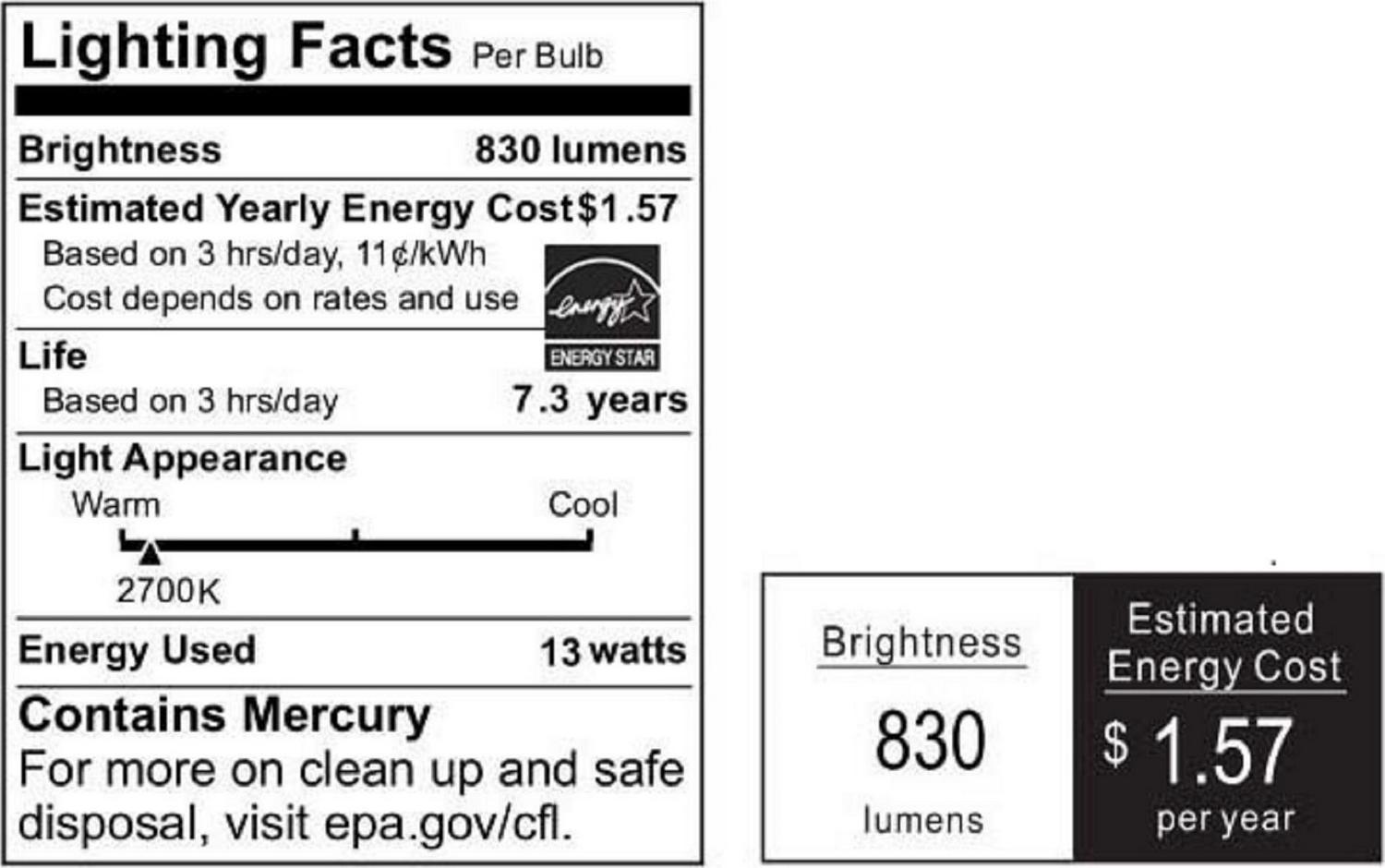 - Light Bulb Type: Compact Fluorescent