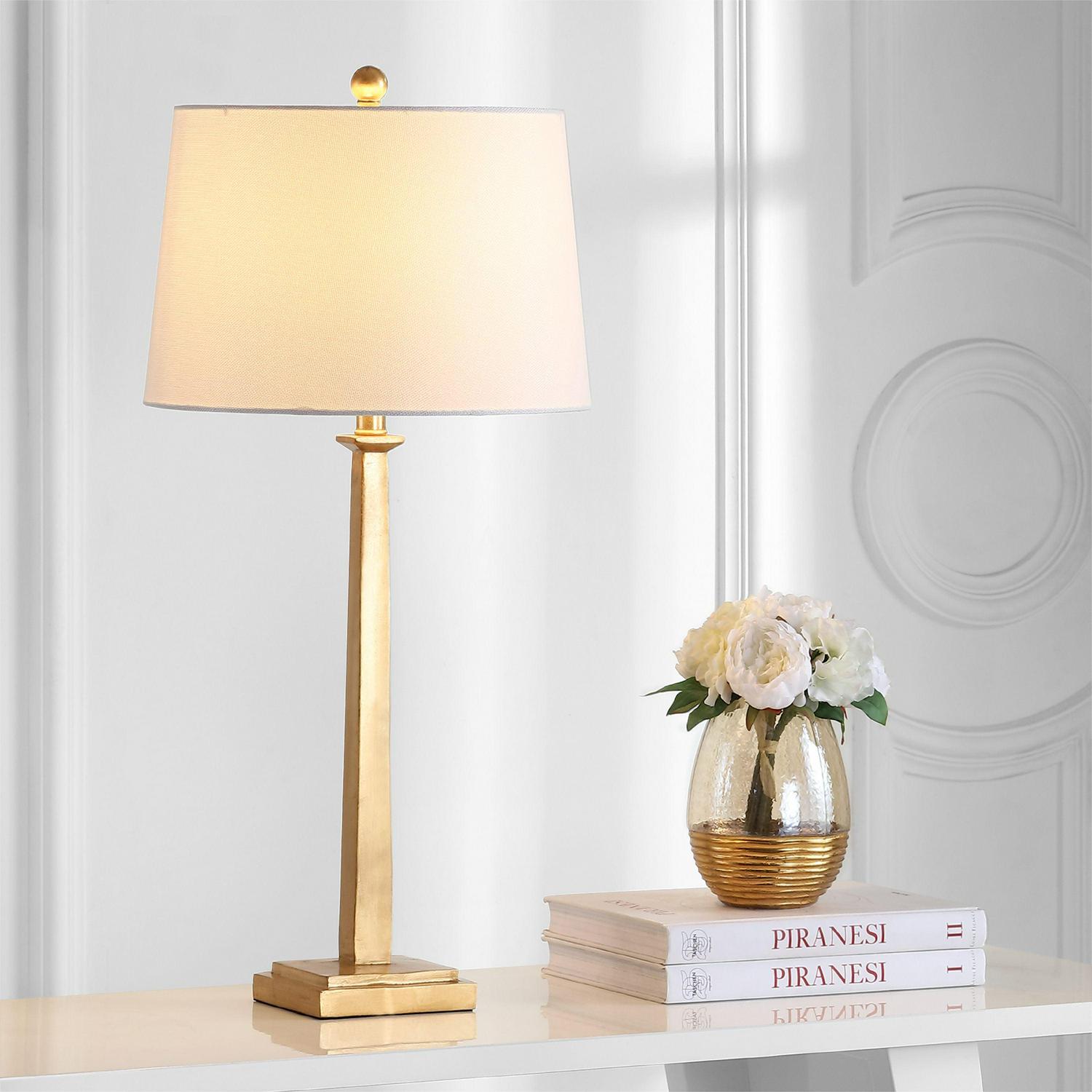 SAFAVIEH Andino Table Lamp (Set of 2) | Gold / White | An iconic pre war apartment on New York s Upper East Side inspired this modern table lamp. Finely crafted, its gold finish illuminates any living room or bedroom with timeless grace and style. The clean lines of its off white shade complement any d cor. Begin your rug, furniture, lighting, outdoor, and home decor search and discover over 100,000 SAFAVIEH products today.