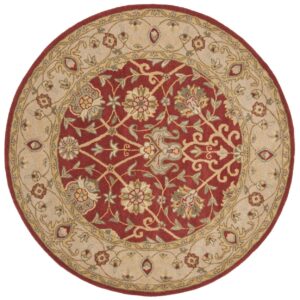 SAFAVIEH Antiquity Lilibeth Traditional Floral Wool Area Rug, Rust, 8′ x 8′ Round