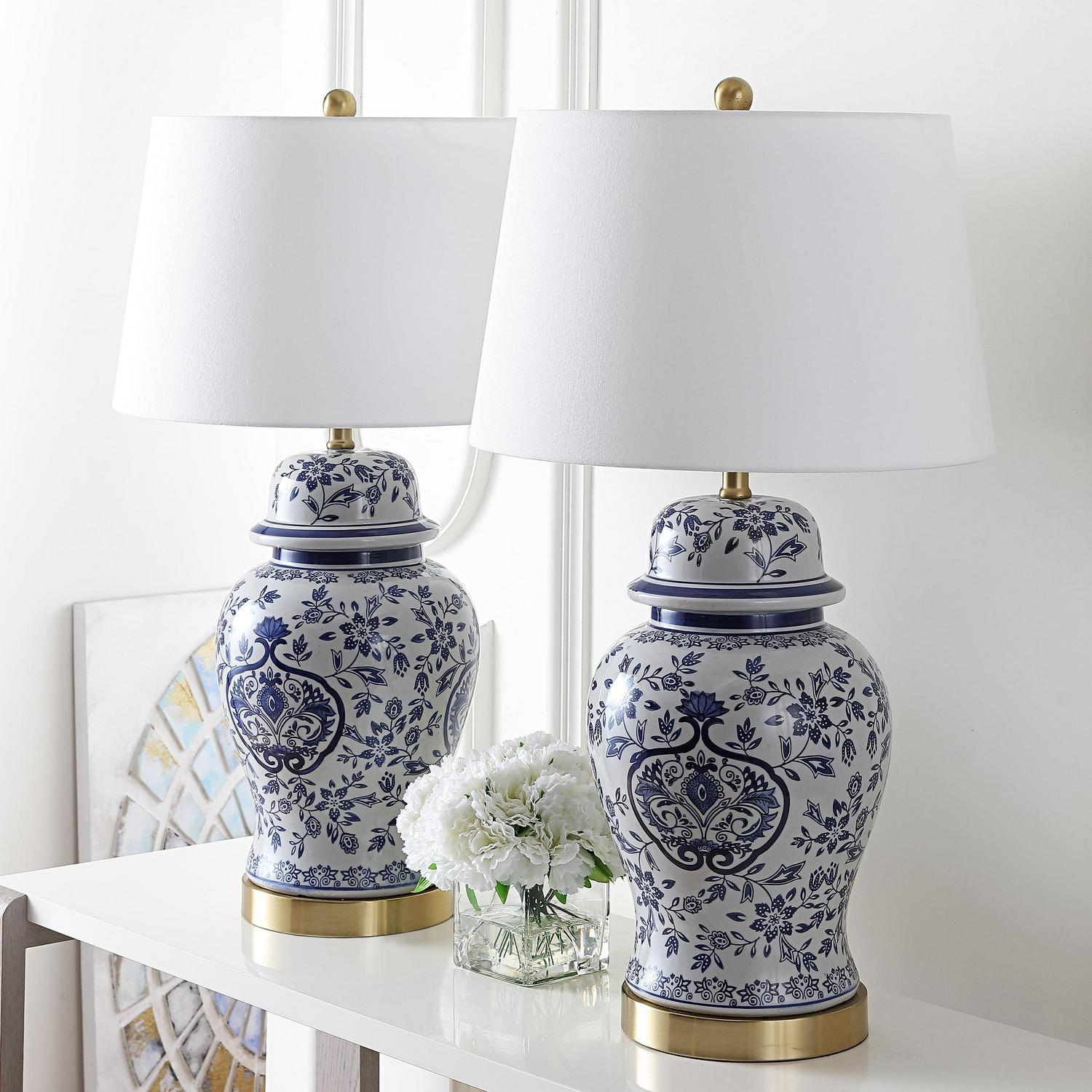 Safavieh Ariadne Floral 28 in. H Table Lamp, Blue/White, Set of 2