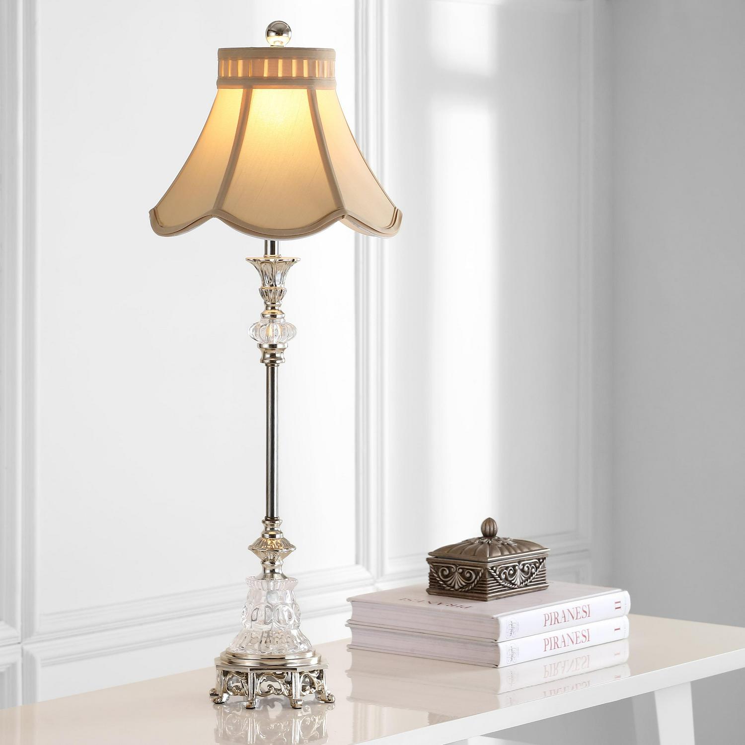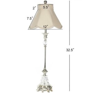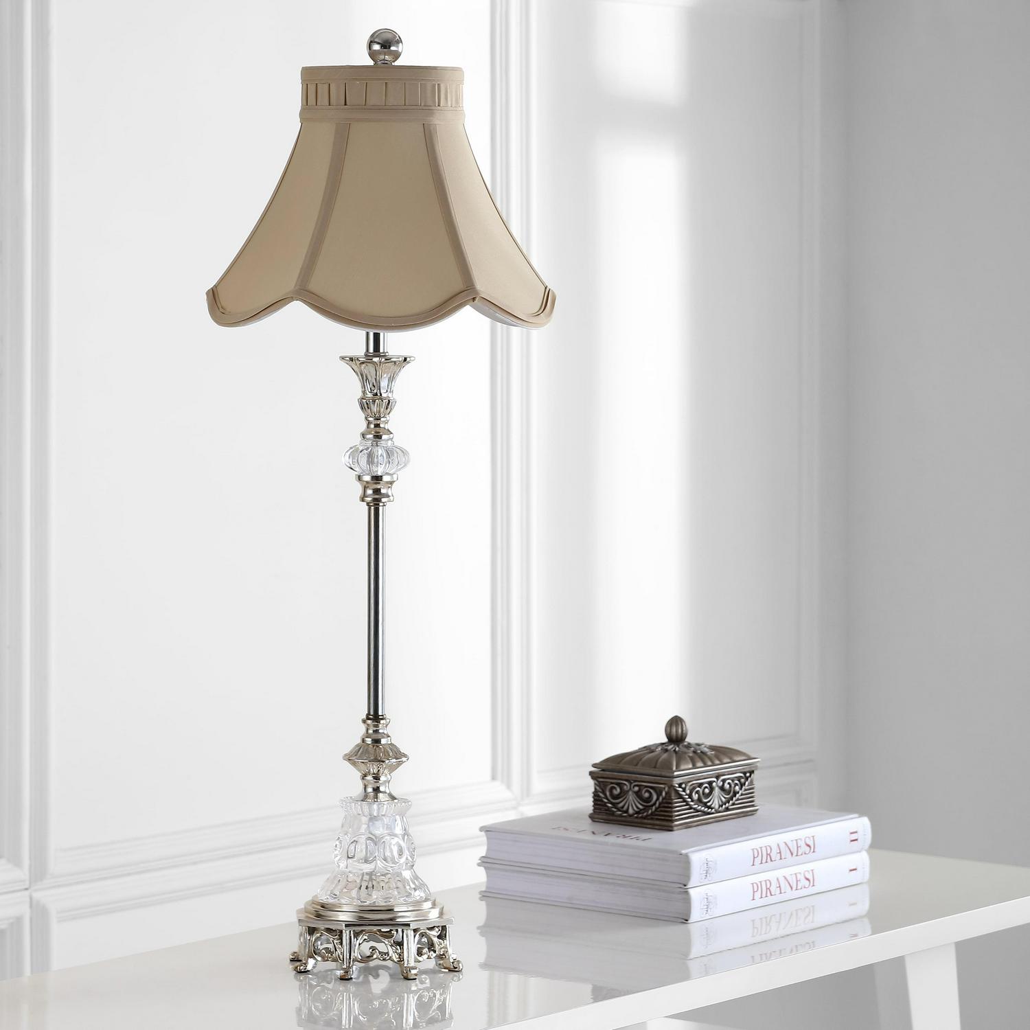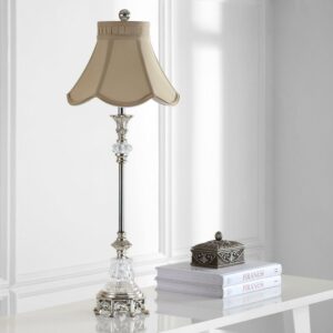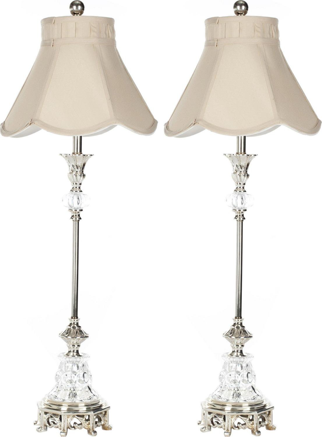 Inspired by the artisan glassworks of Europe, the Arianna Candlestick Lamp is an elegant addition to any interior. Perfect for highlighting a Versailles worthy meal in the dining room or in the boudoir for a touch of romance, Arianna s scalloped taupe shade adds a hint of whimsy. Sold in a set of two.