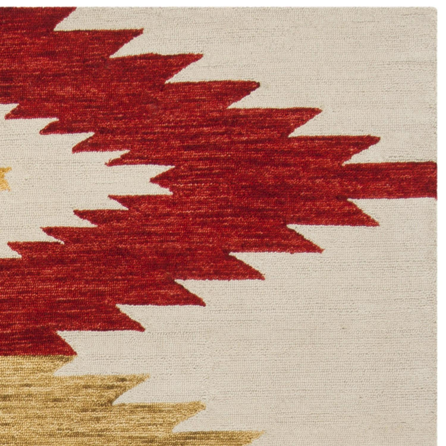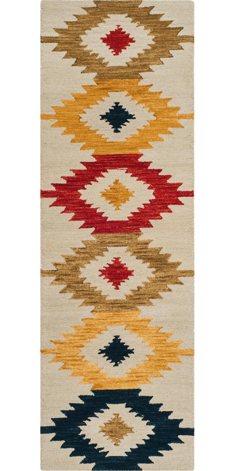SAFAVIEH Aspen APN704A Handmade Ivory / Multi Rug The trendy new look of rustic-chic decor is marvelously captured in the tribal-art inspired designs and sublime color palette of the Aspen Collection. Simple yet expressive, Aspen revives tribal motifs with fashionable hues and a comfort-soft feel underfoot. Made using pure wool in a low loop pile, this striking collection is perfectly styled for classy-casual home decor. Rug has an approximate thickness of 0.5 inches.