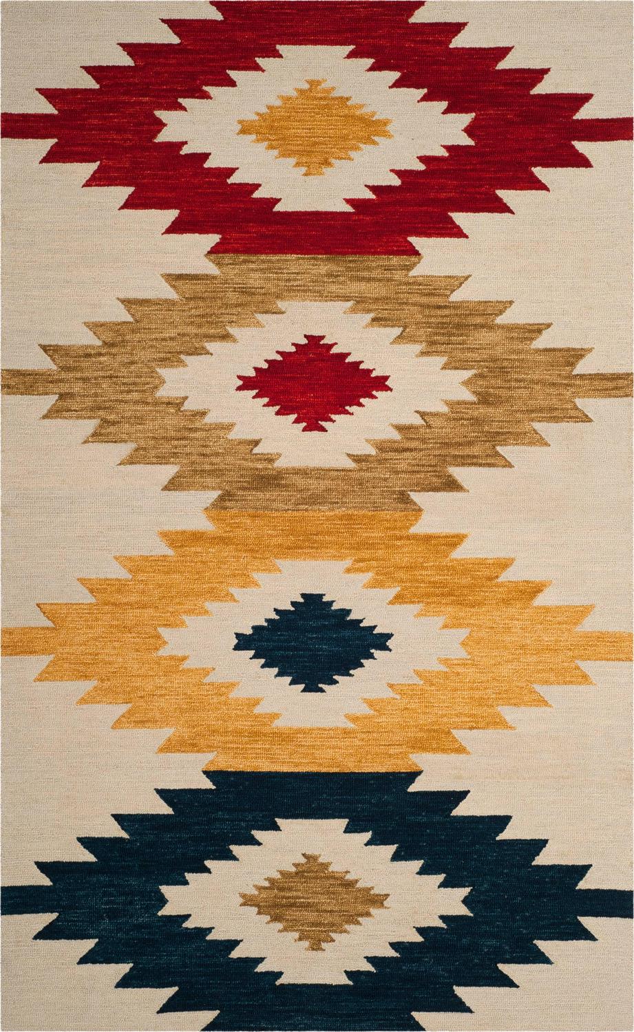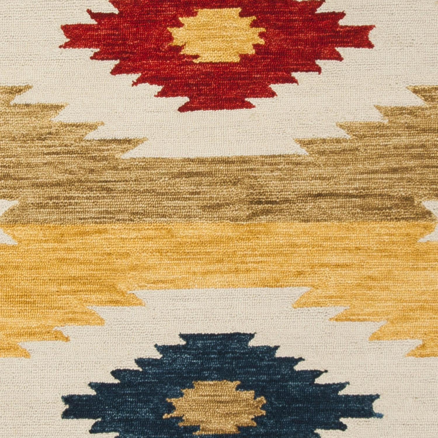 SAFAVIEH Aspen APN704A Handmade Ivory / Multi Rug The trendy new look of rustic-chic decor is marvelously captured in the tribal-art inspired designs and sublime color palette of the Aspen Collection. Simple yet expressive, Aspen revives tribal motifs with fashionable hues and a comfort-soft feel underfoot. Made using pure wool in a low loop pile, this striking collection is perfectly styled for classy-casual home decor. Rug has an approximate thickness of 0.5 inches.