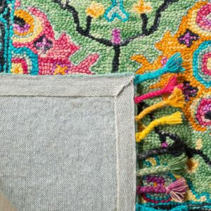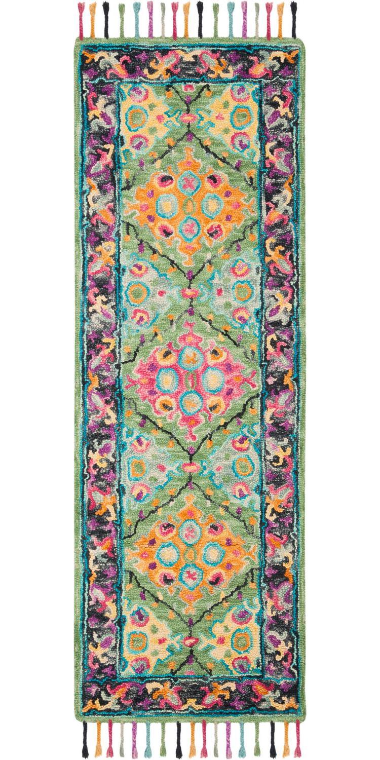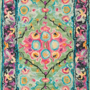 SAFAVIEH Aspen Emely Colorful Floral Wool Runner Rug, Light Green/Black, 2’3 x 7′