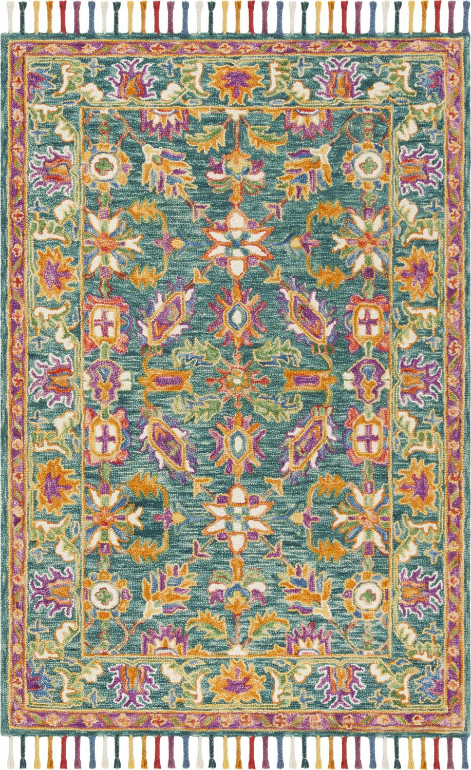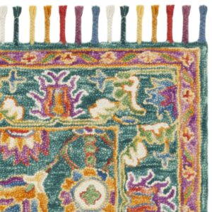 SAFAVIEH Aspen Mario Colorful Floral Wool Area Rug, Turquoise/Purple, 3′ x 5′