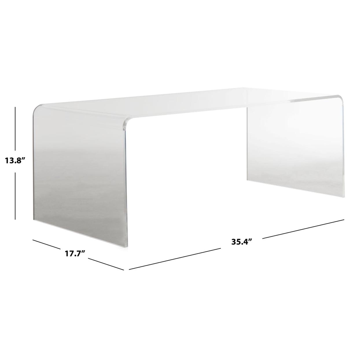 SAFAVIEH Atka Acrylic Coffee Table Clear A style icon of the Fifties and Sixties, acrylic makes an impressive comeback in the Atka Coffee Table. Atka flaunts its chic minimalism with graceful transparency, giving an airy ambiance to any interior.