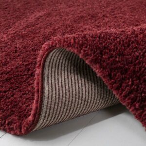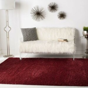 SAFAVIEH August Carlene Solid Plush Shag Area Rug, Burgundy, 5′ x 5′ Square