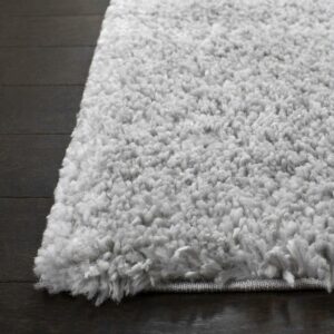 SAFAVIEH August Carlene Solid Plush Shag Runner Rug, Silver, 2’3 x 14′