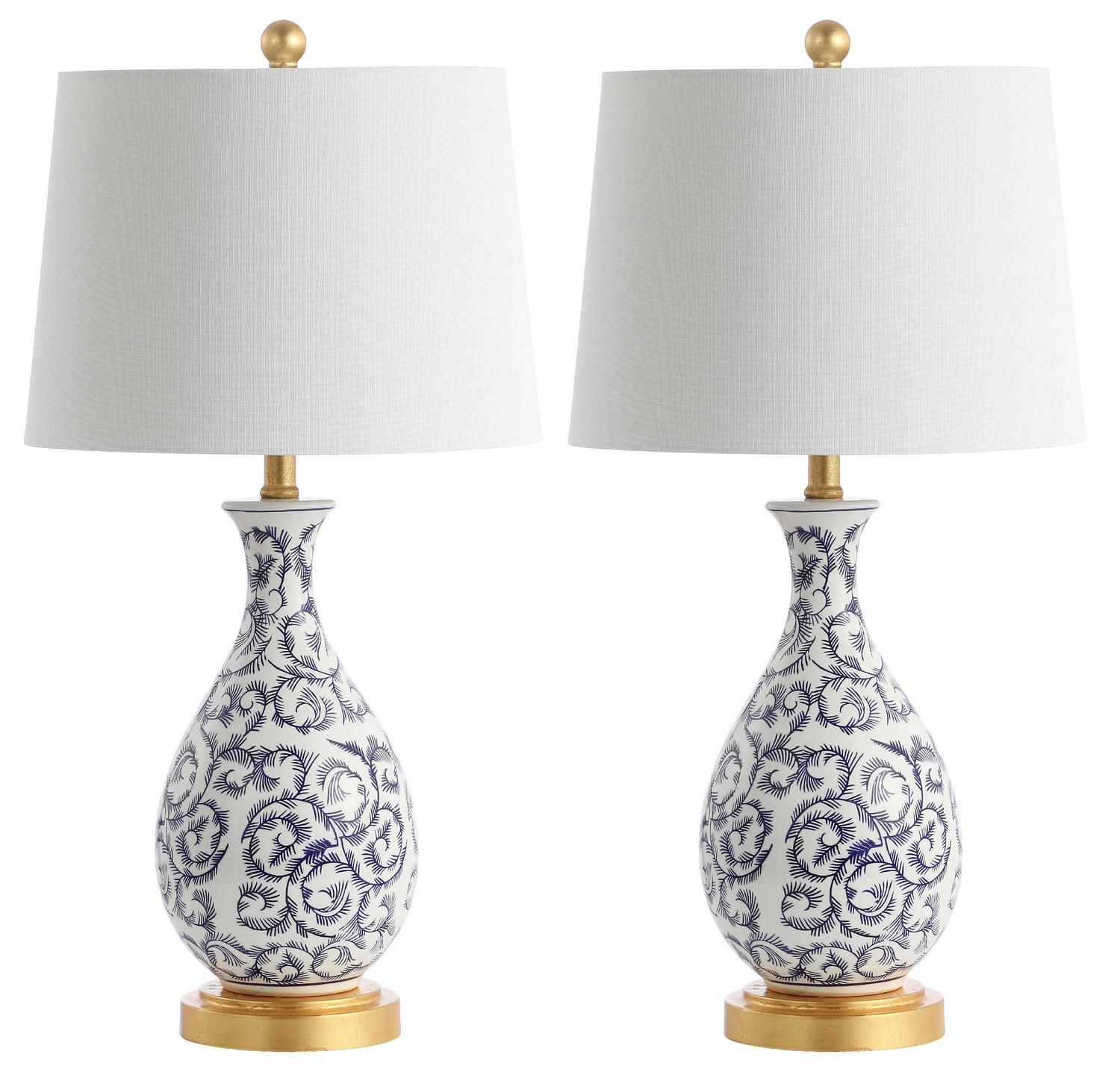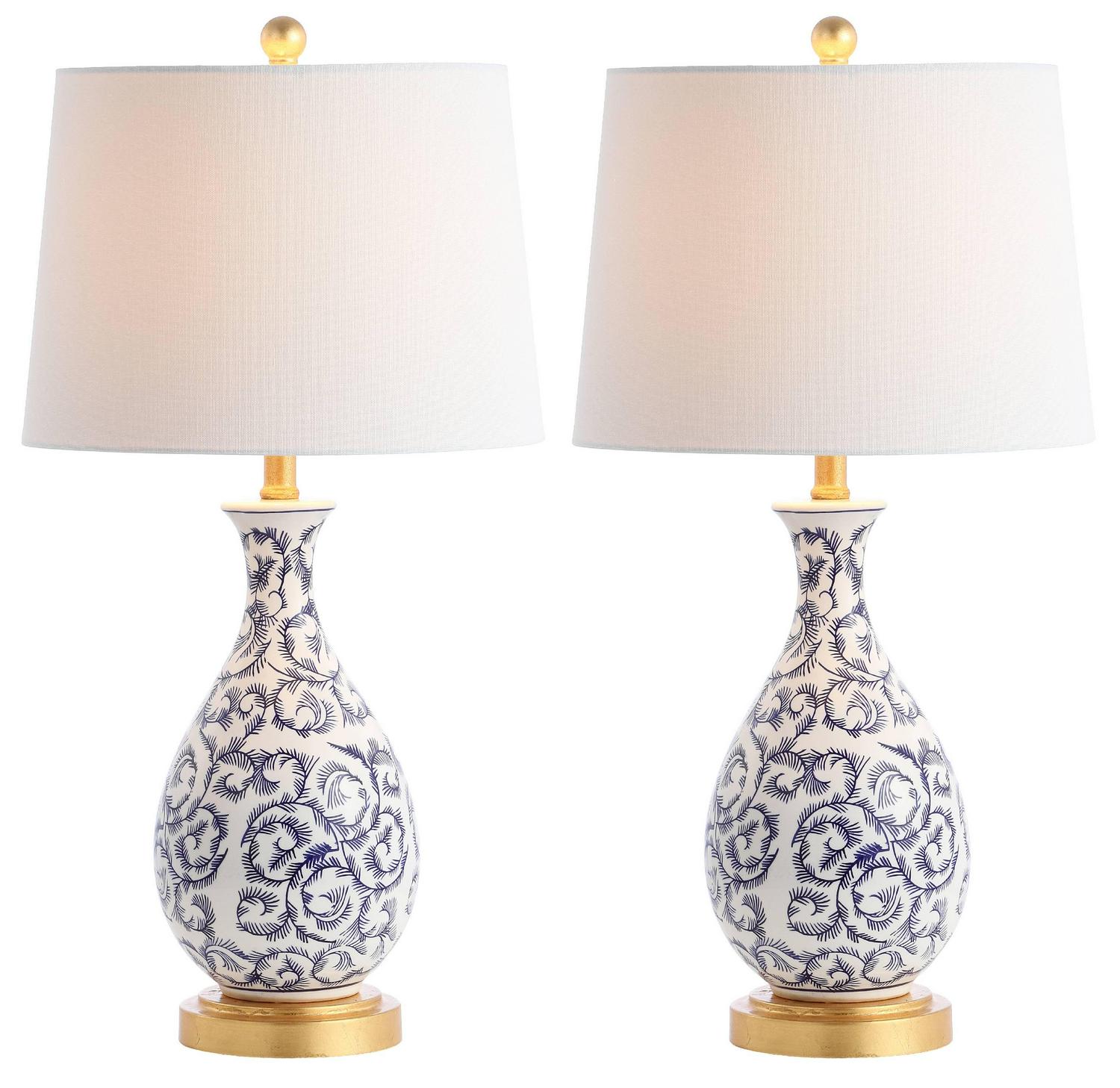 SAFAVIEH Avi Floral Vines 27.5 in. H Table Lamp, Blue/White, Set of 2