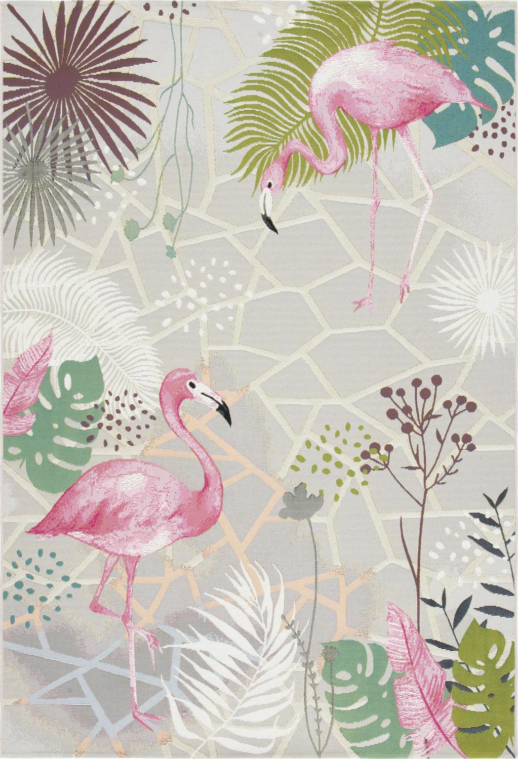 SAFAVIEH Barbados Flamingos Outdoor Area Rug, 5’3 x 7’6 , Grey/Pink