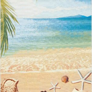 SAFAVIEH Barbados Sea Shells Outdoor Area Rug, 5’3 x 7’6 , Gold/Blue