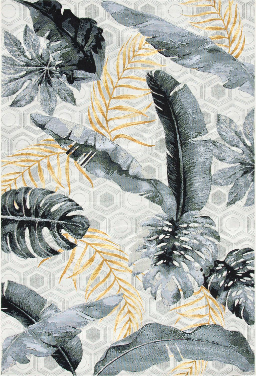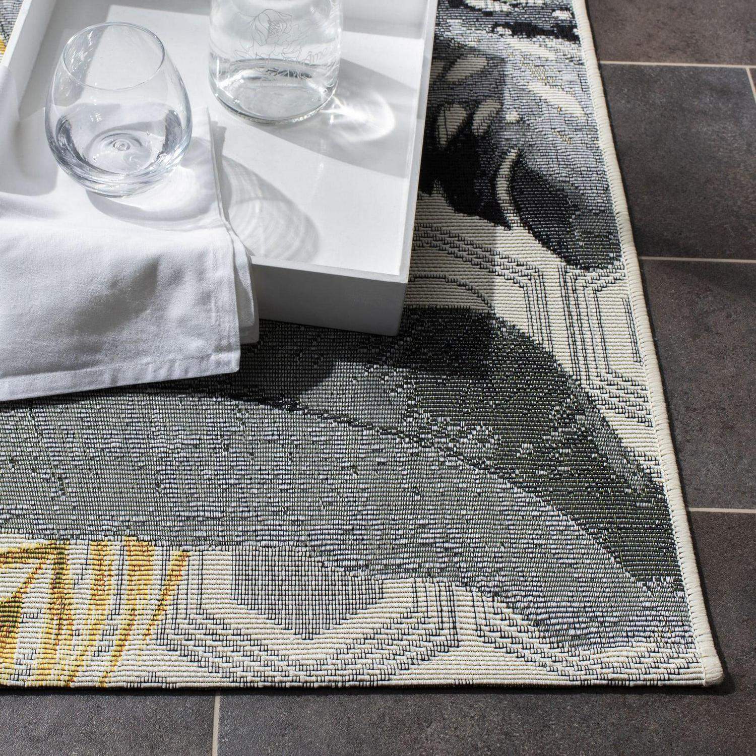 SAFAVIEH Barbados Tropical Leaves Outdoor Area Rug, 5’3 x 7’6 , Grey/Gold