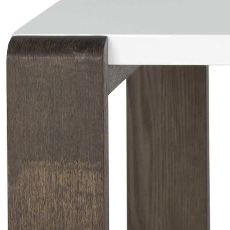 SAFAVIEH Bartholomew Scandinavian Lacquer Coffee Table White / Dark Brown Rugged meets refined in the contemporary Bartholomew coffee table with white lacquer top and chunky wood grained base in a chic dark brown finish. In homes from coastal to urban, this dramatic Console Table will command attention in a living room or den.